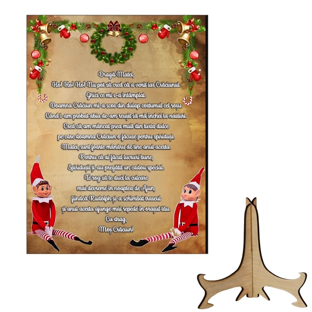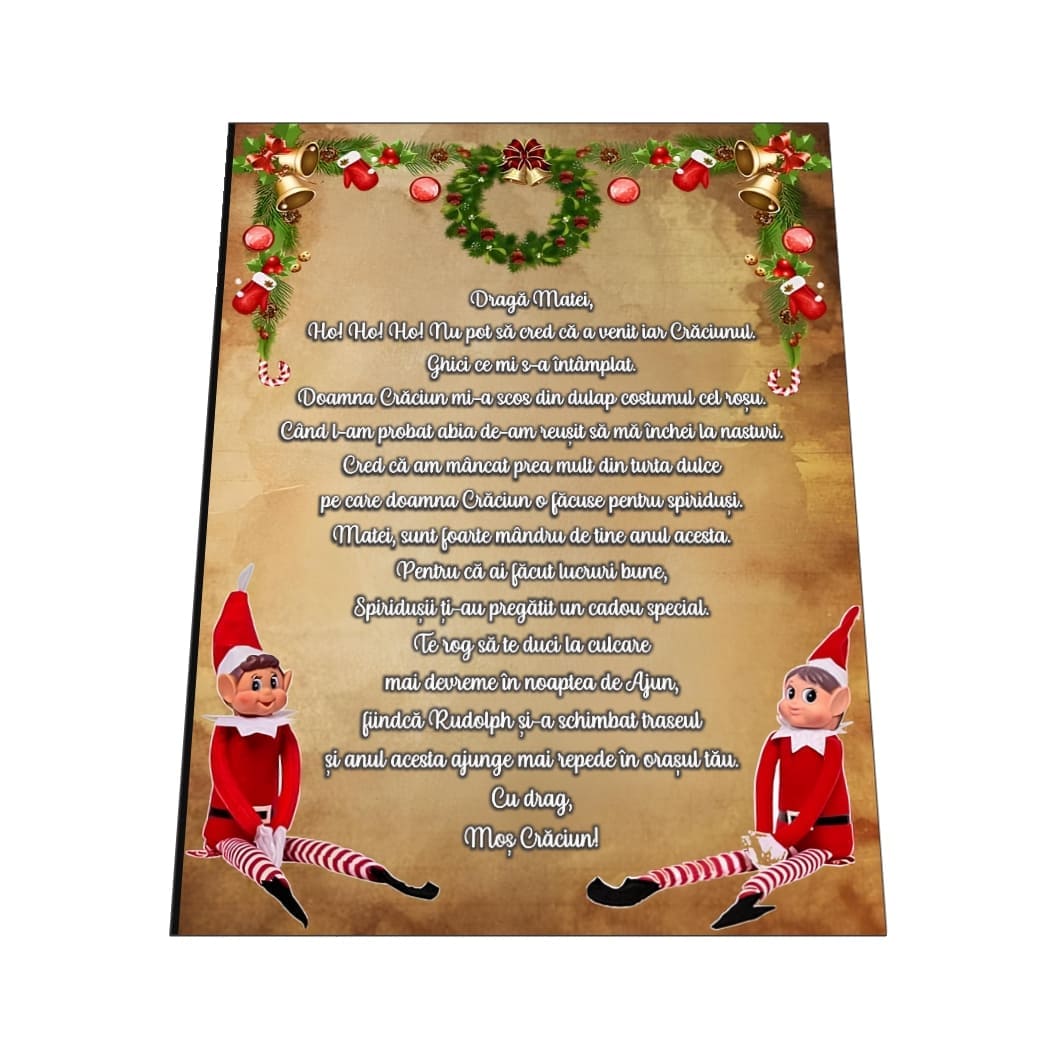 Scrisoare Mos Craciun, Lemn, 20x15 cm, SMCUV011 Prețul inițial a fost: 40,00 lei.Prețul curent este: 29,99 lei.