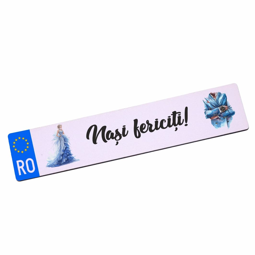 Set 2 Placute Numar Masina, Nasi, Albastru, Nunta, Lemn, 52x11cm, PMNUV006