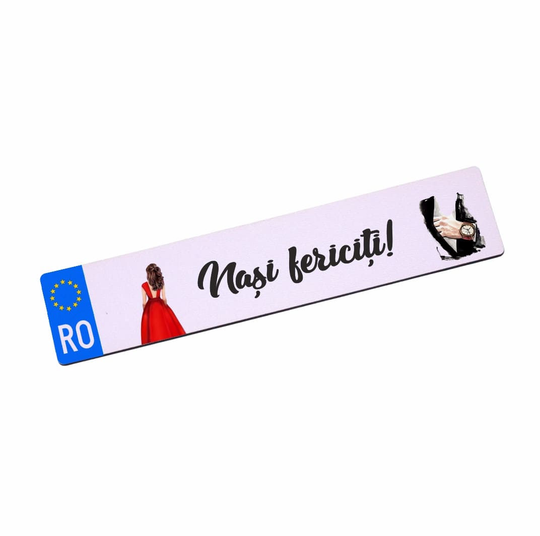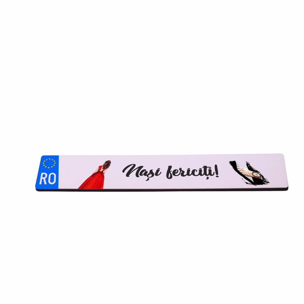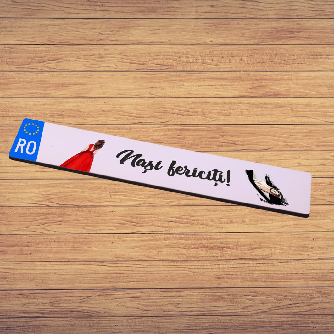 Set 2 Placute Numar Masina, Nasi, Rosu, Nunta, Lemn, 52x11cm, PMNUV002