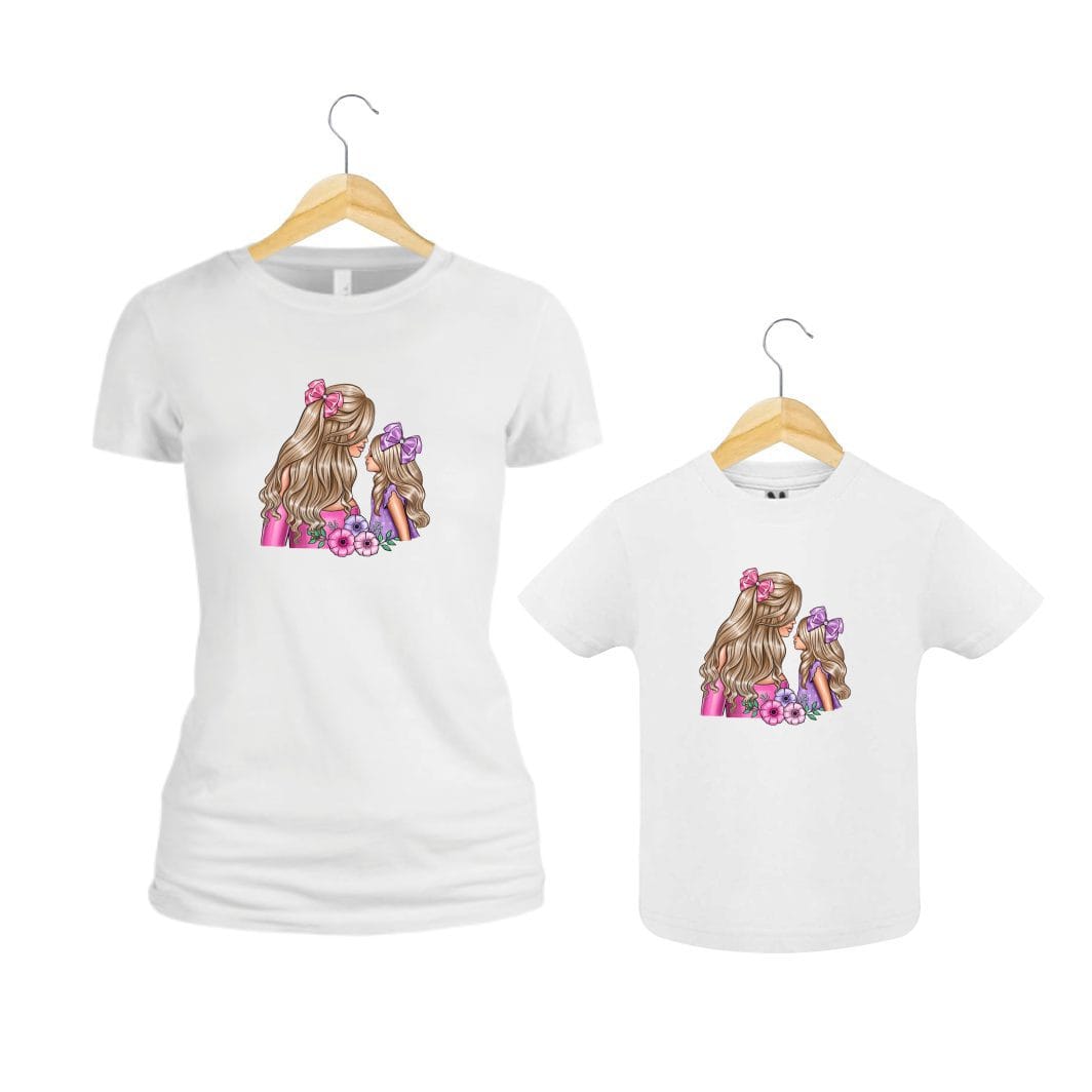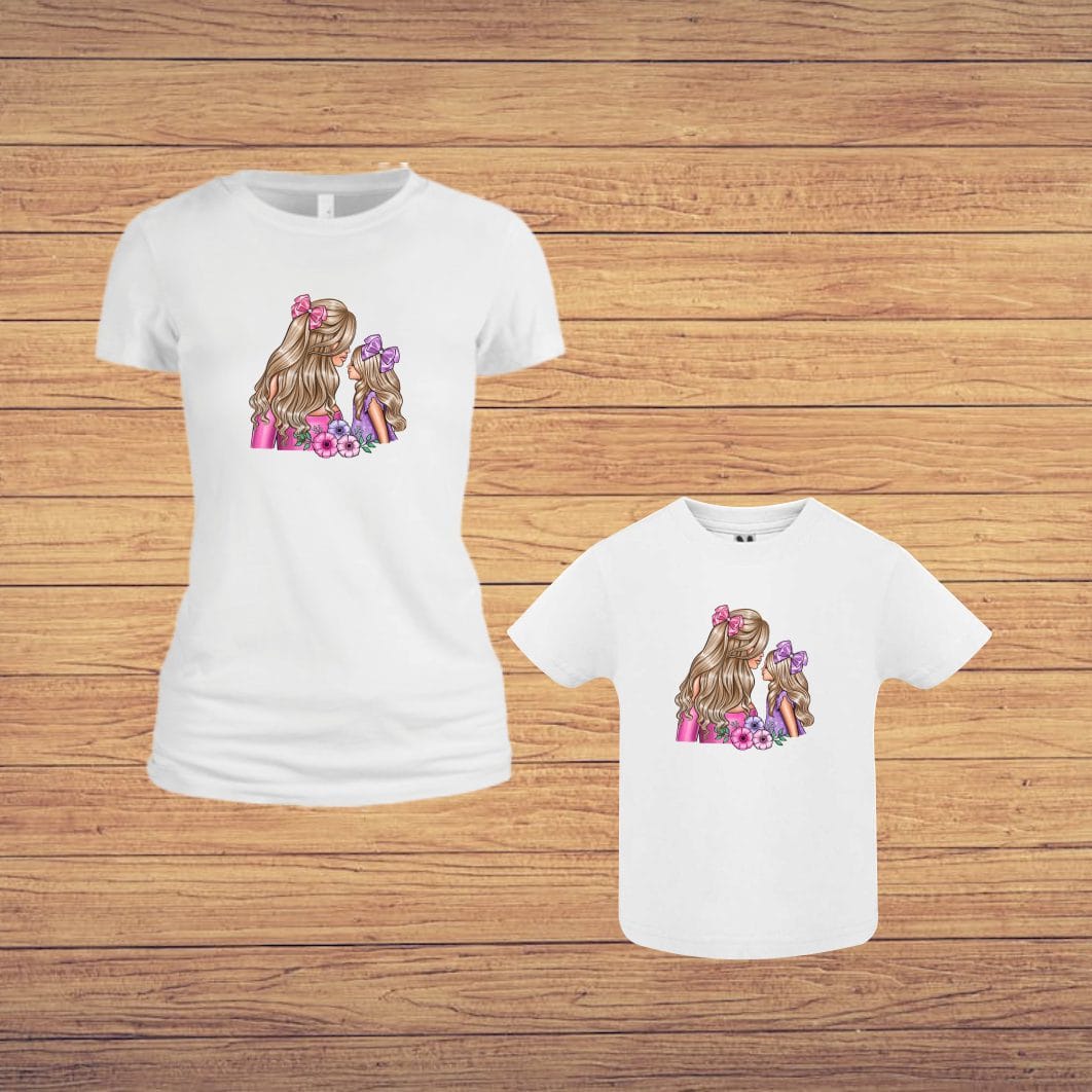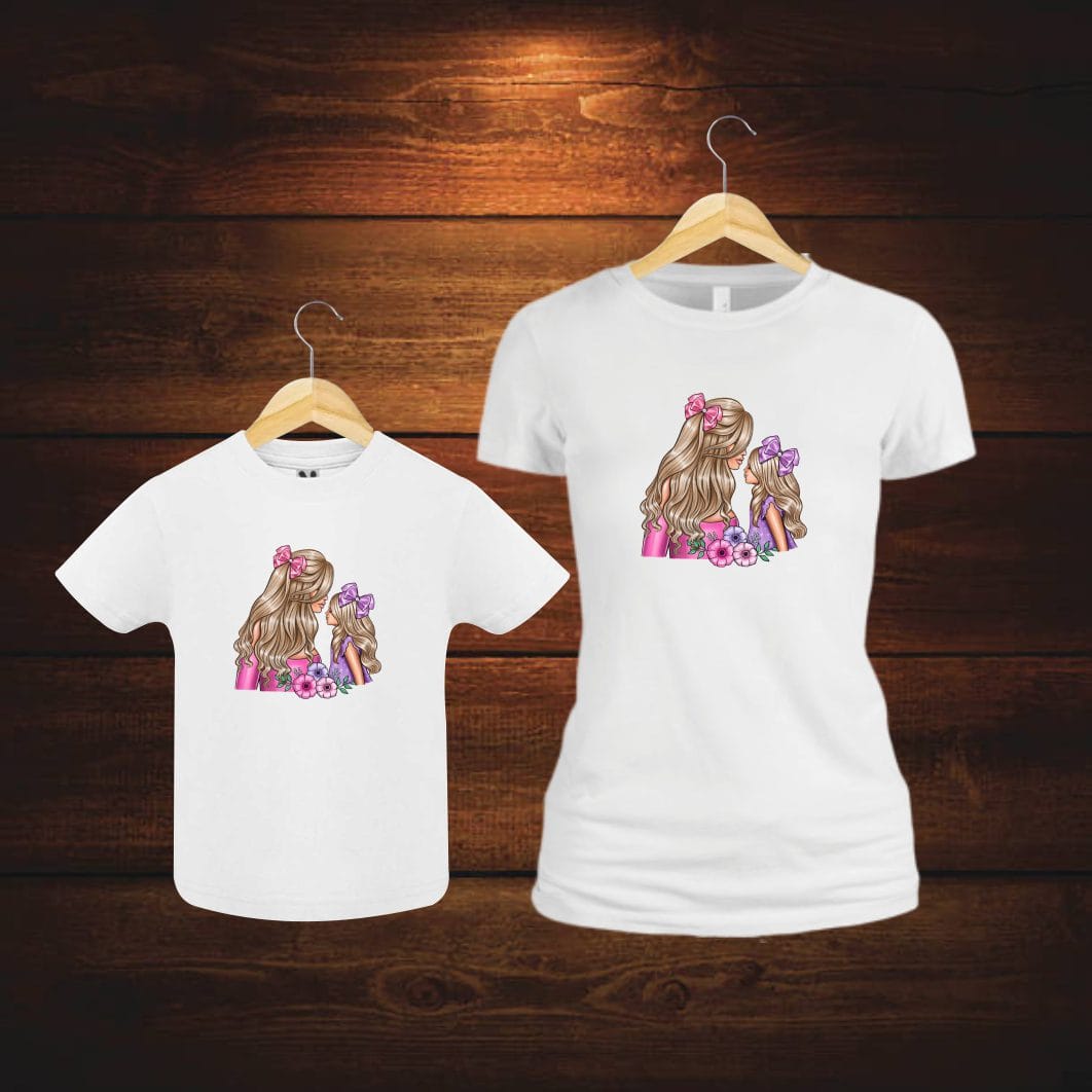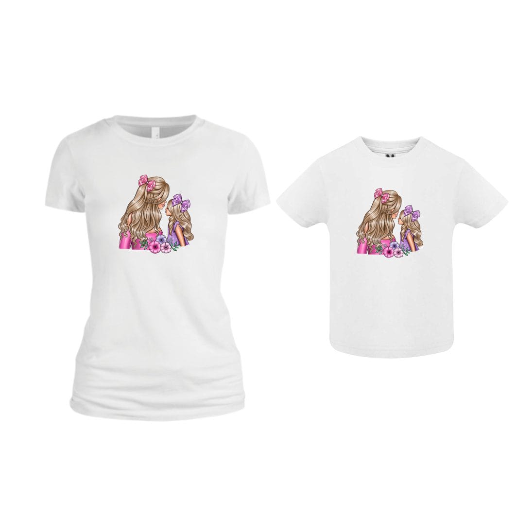 Set 2 Tricouri , Mama-fiica, Bumbac, Alb, TU103
