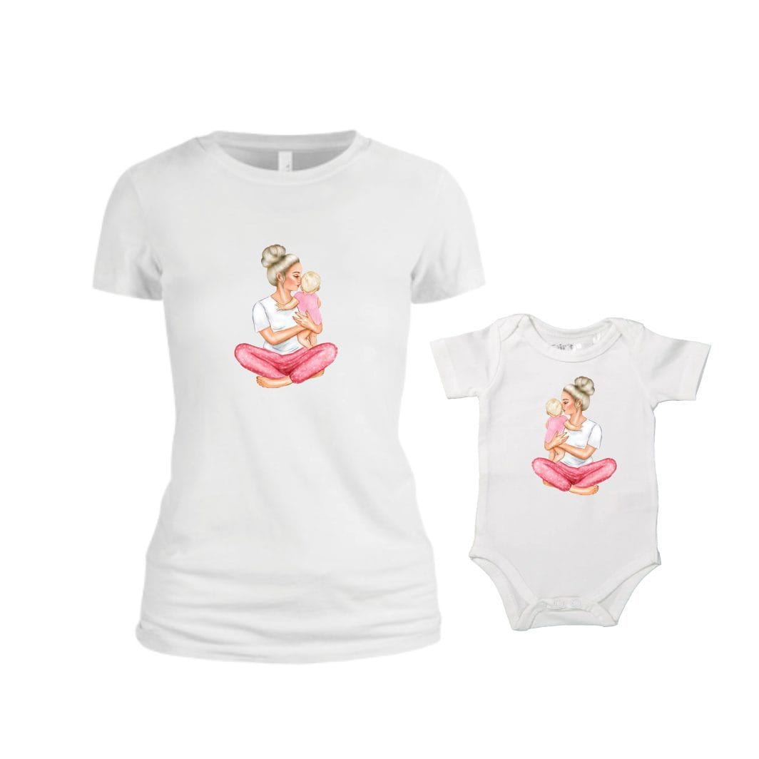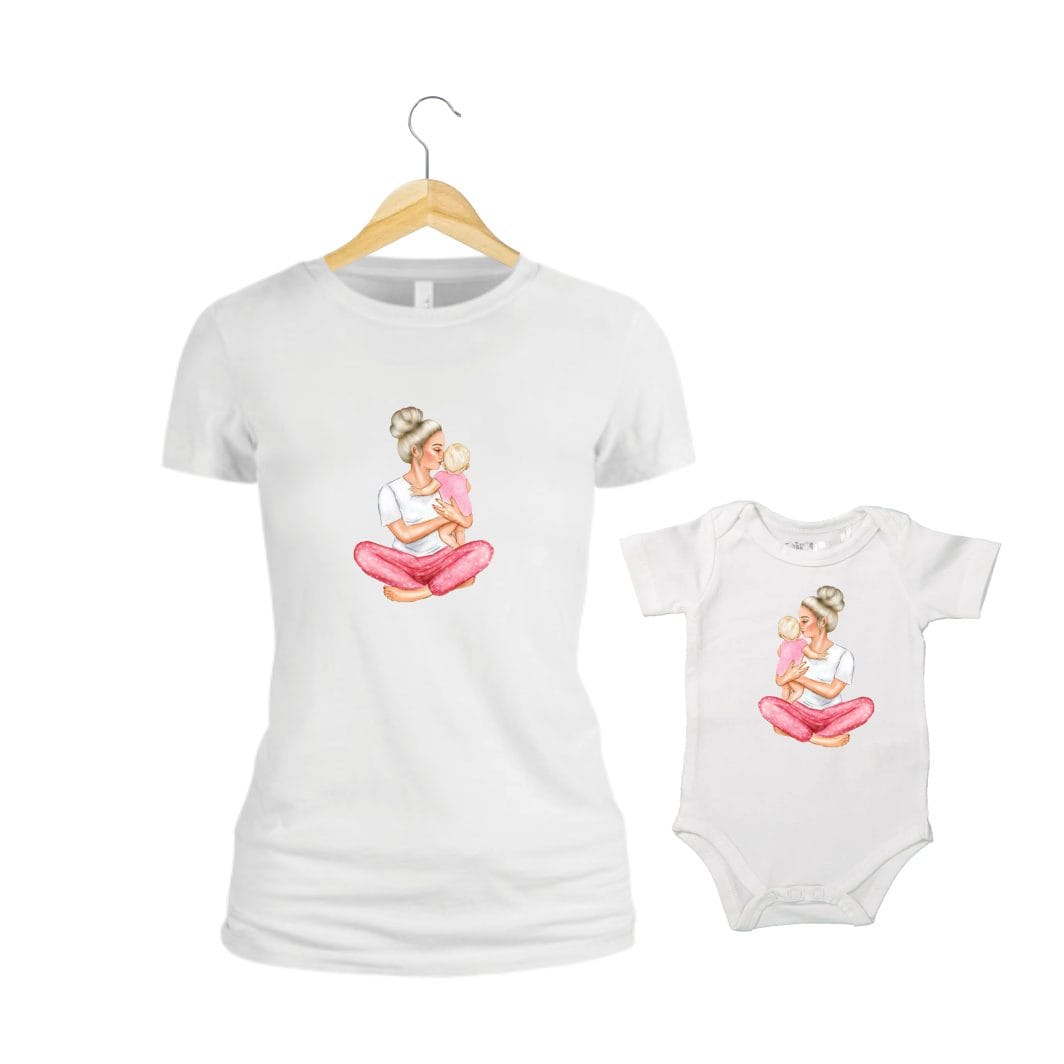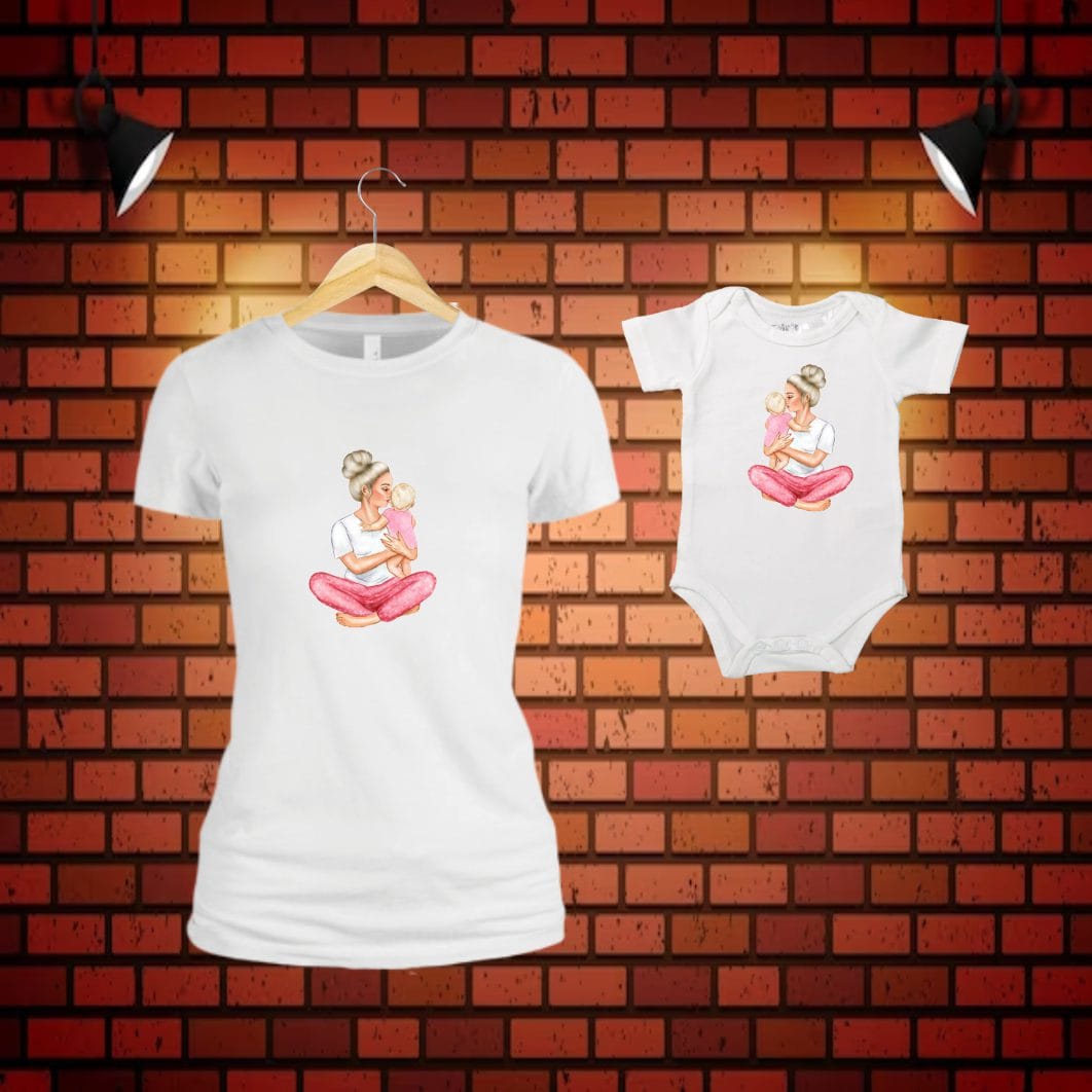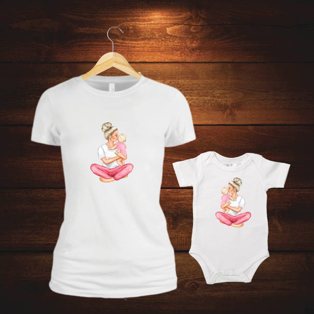 Set 2 Tricouri , Mama-fiica, Bumbac, Alb, TU103
