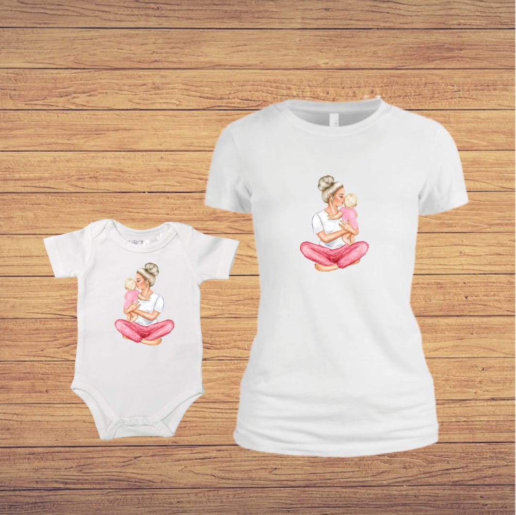 Set 2 Tricouri , Mama-fiica, Bumbac, Alb, TU104