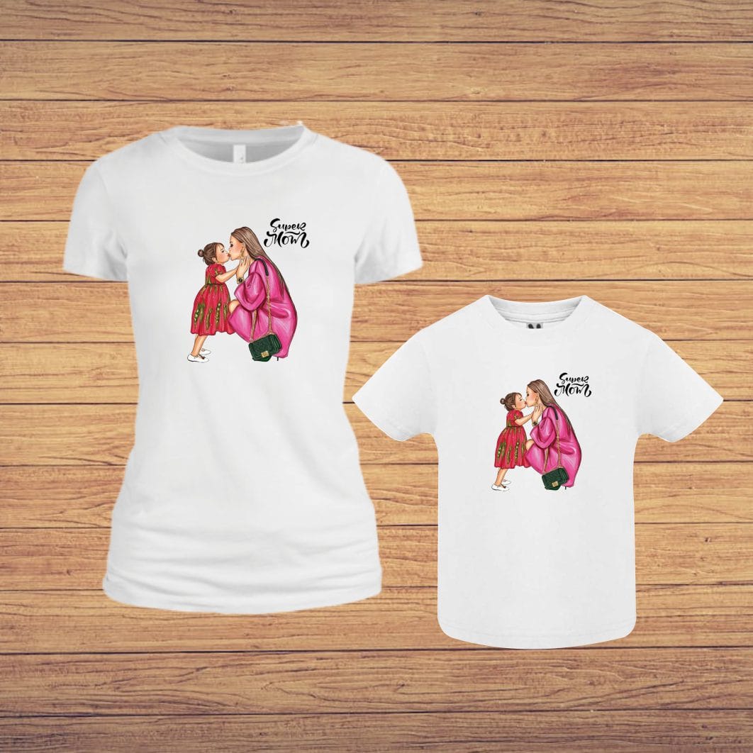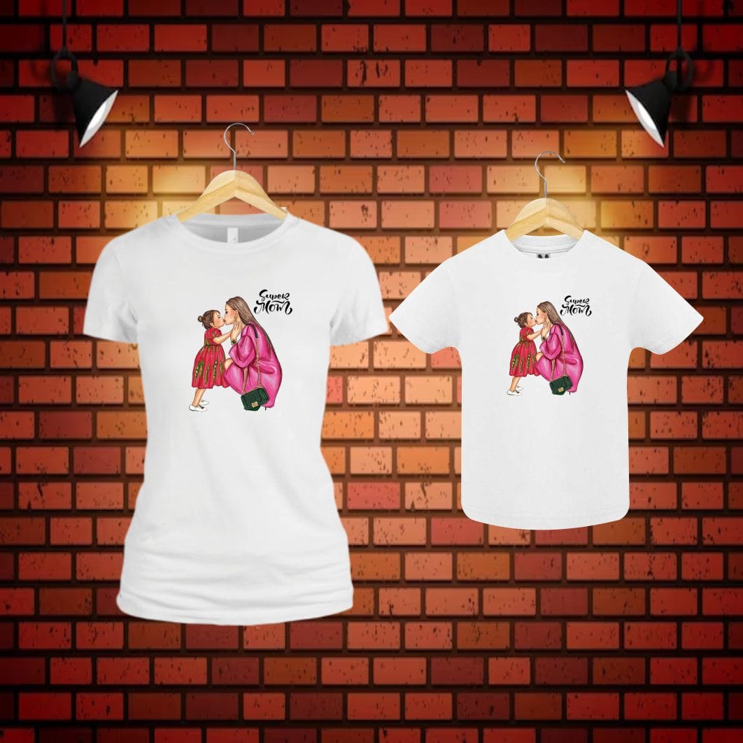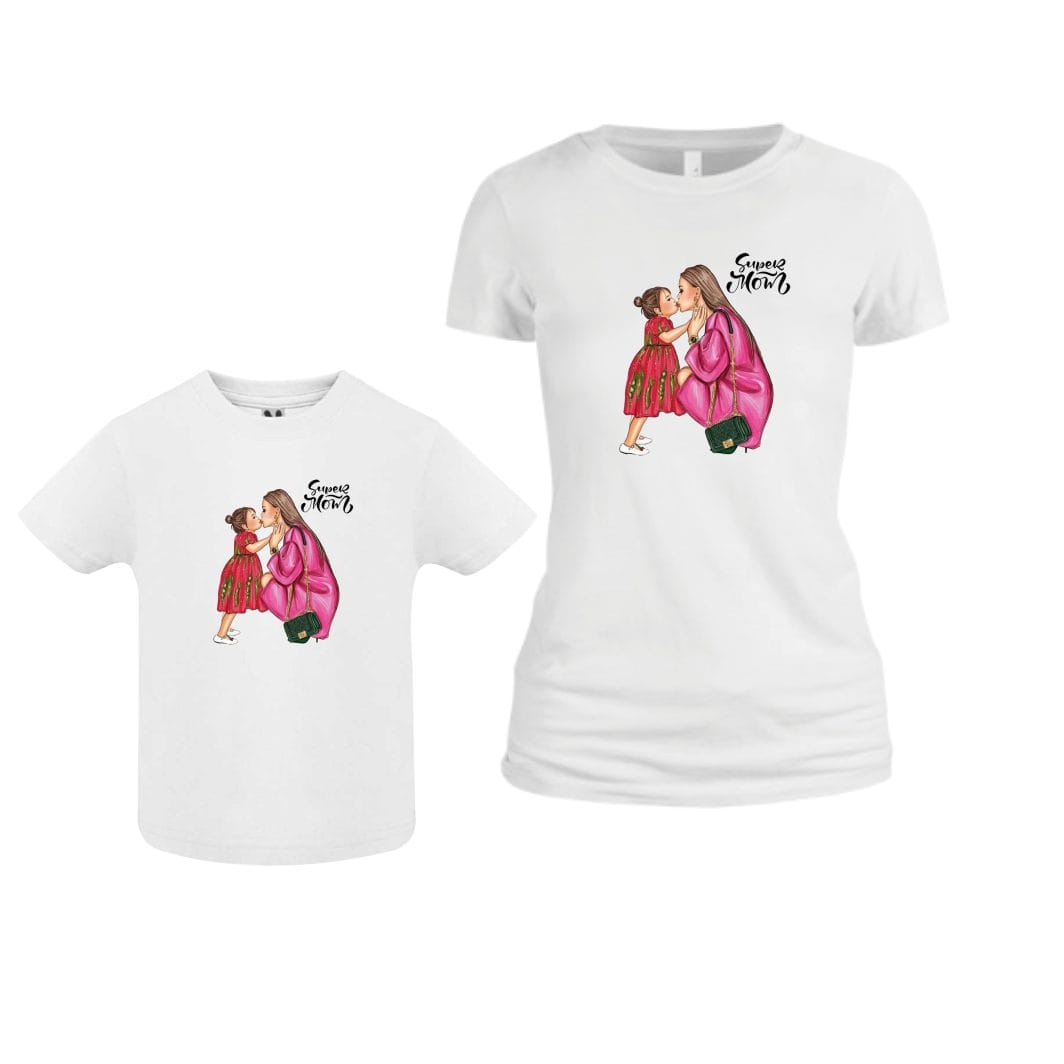Set 2 Tricouri , Mama-fiica, Bumbac, Alb, TU55
