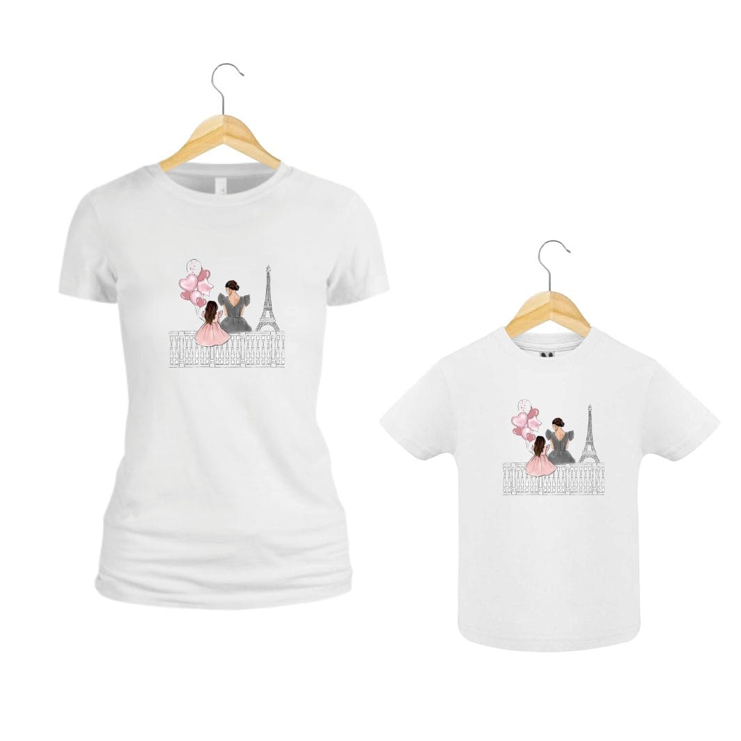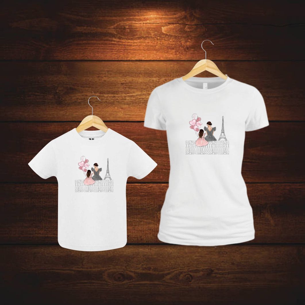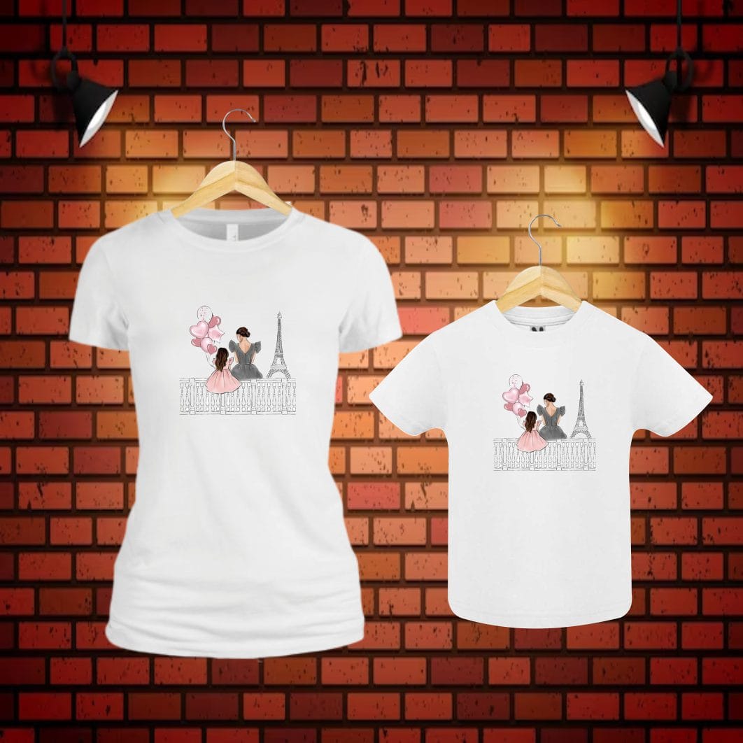 Set 2 Tricouri , Mama-fiica, Bumbac, Alb, TU59