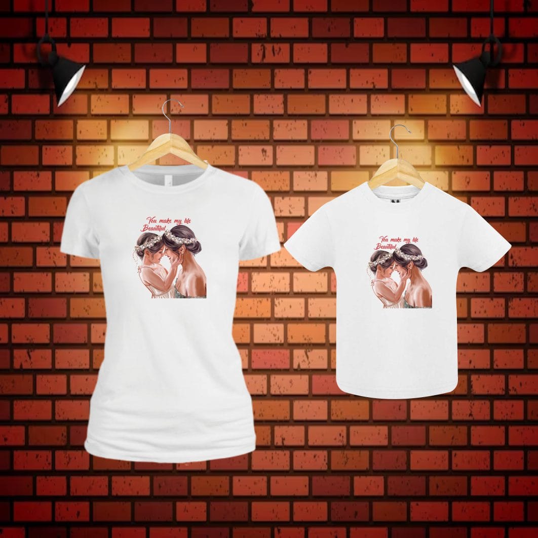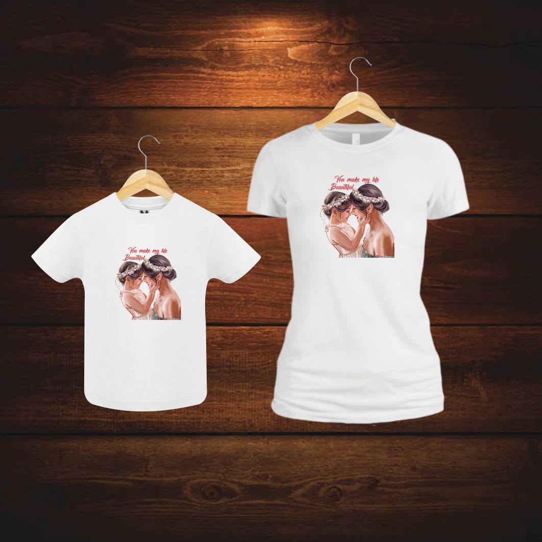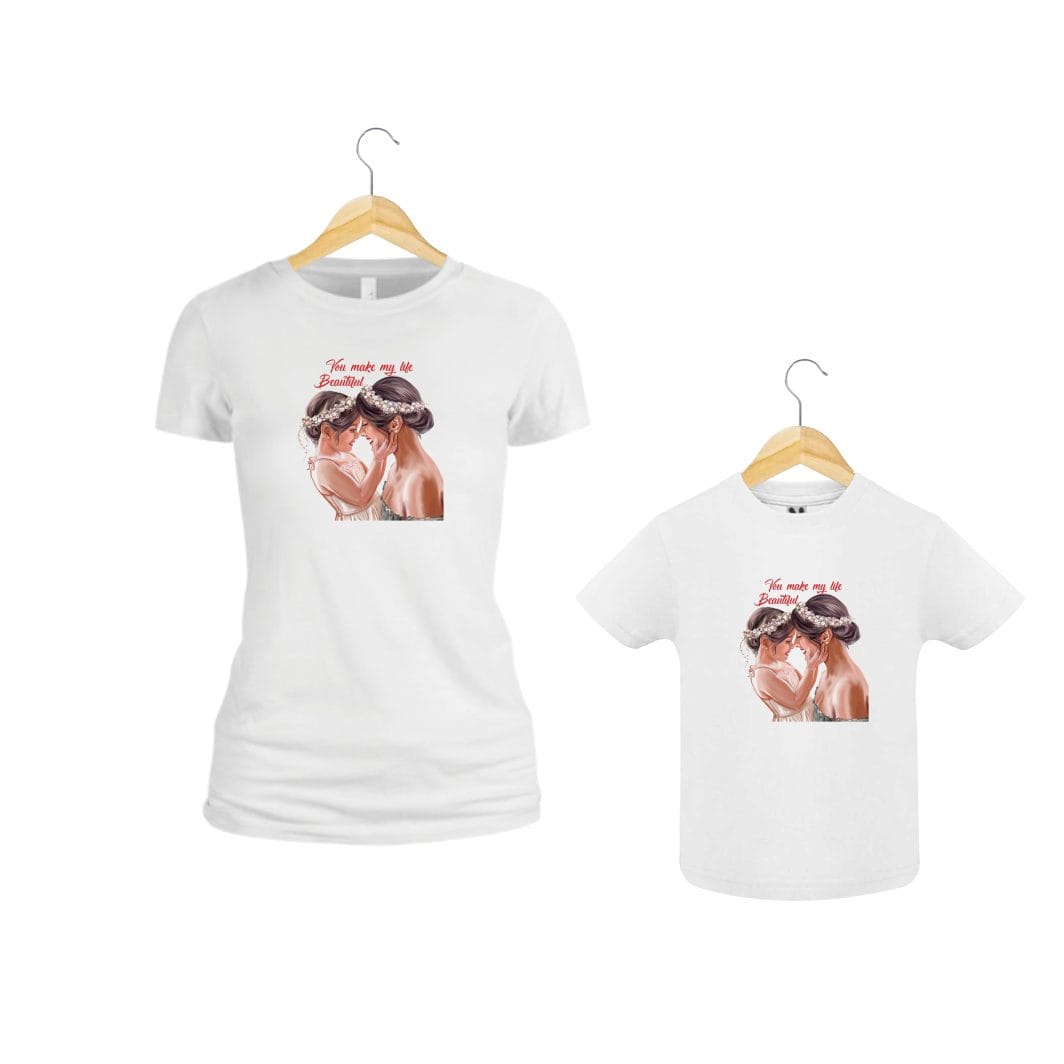 Set 2 Tricouri , Mama-fiica, Bumbac, Alb, TU61