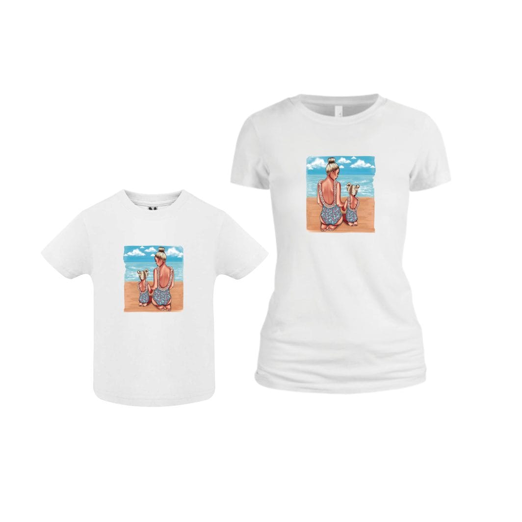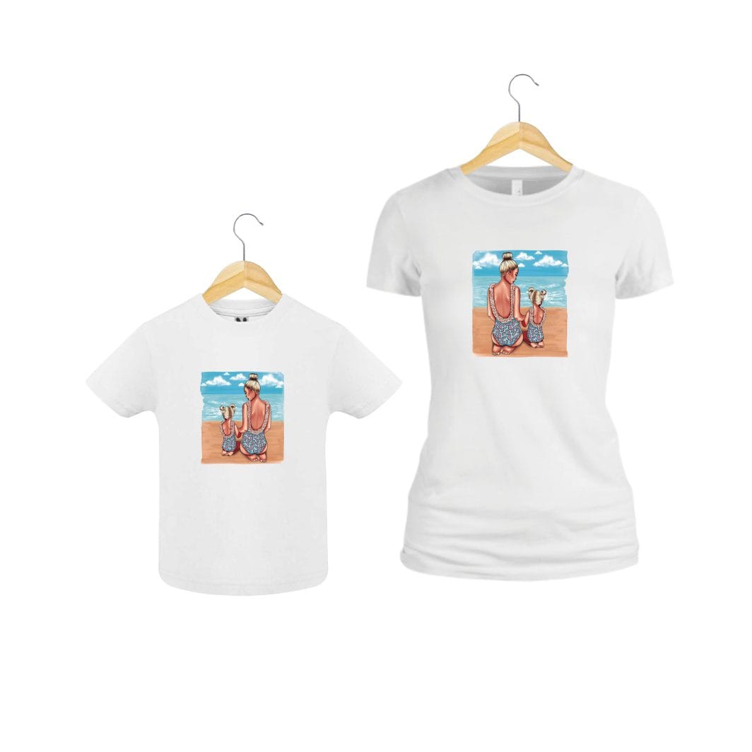 Set 2 Tricouri , Mama-fiica, Bumbac, Alb, TU65
