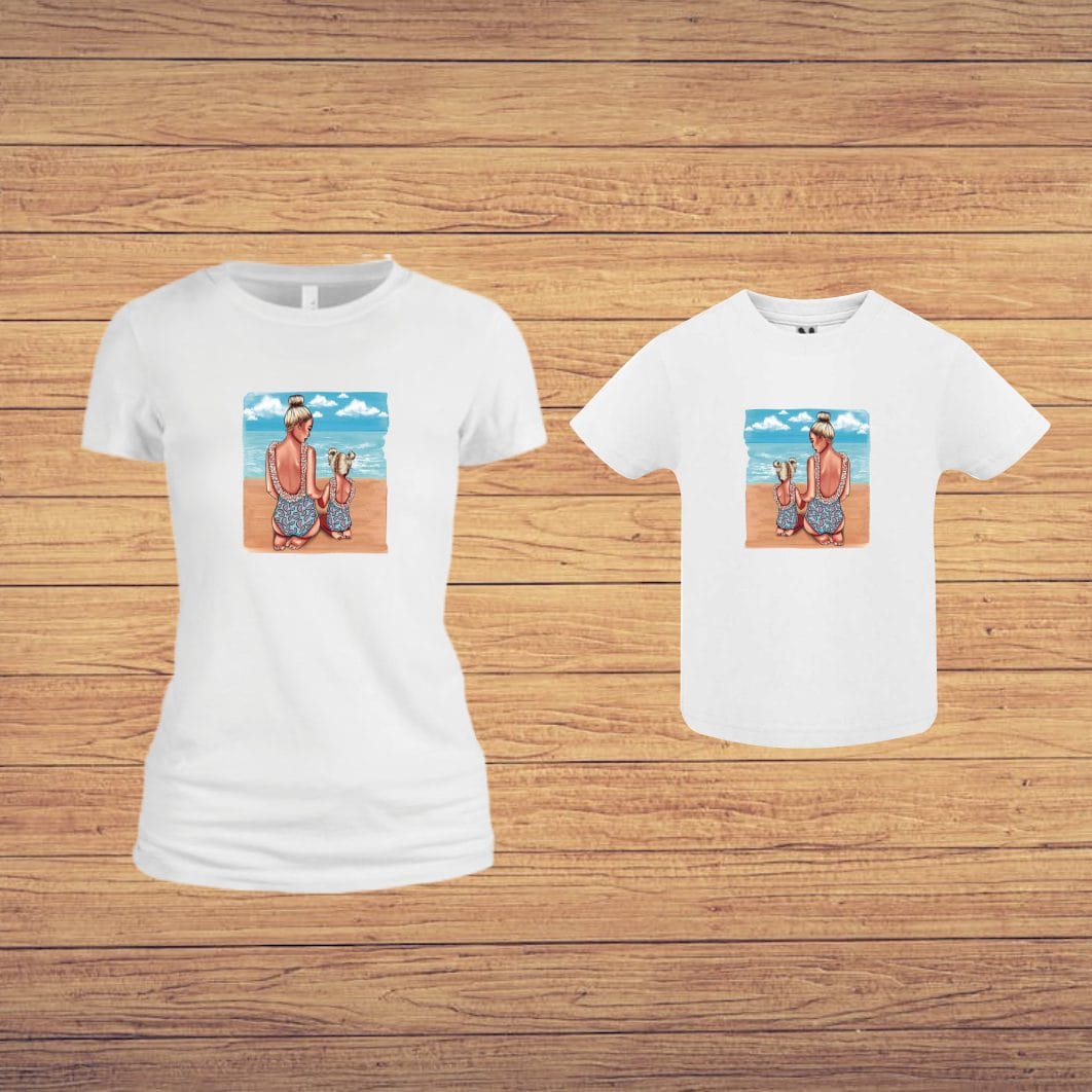 Set 2 Tricouri , Mama-fiica, Bumbac, Alb, TU64