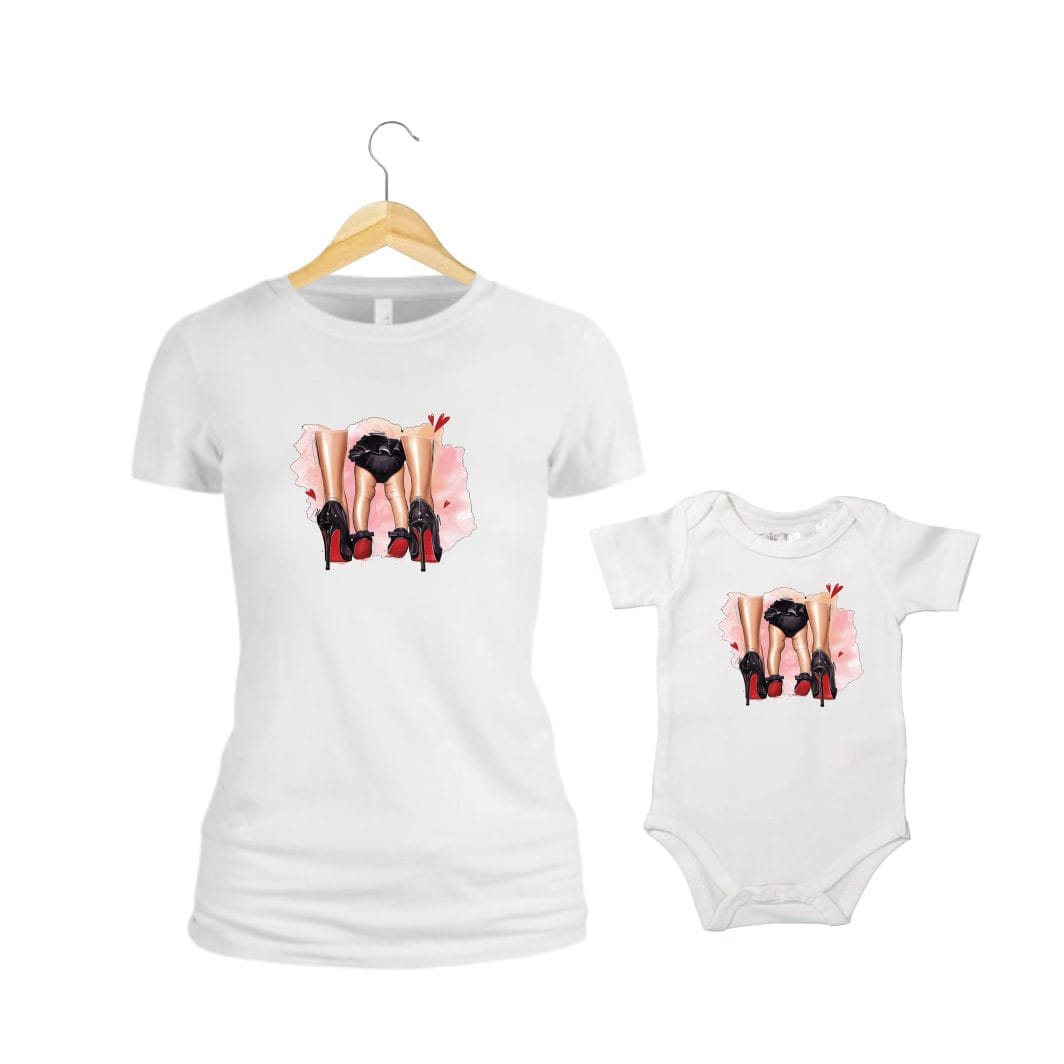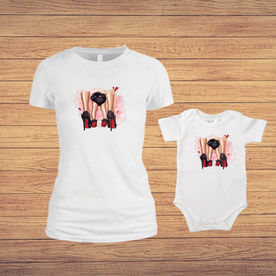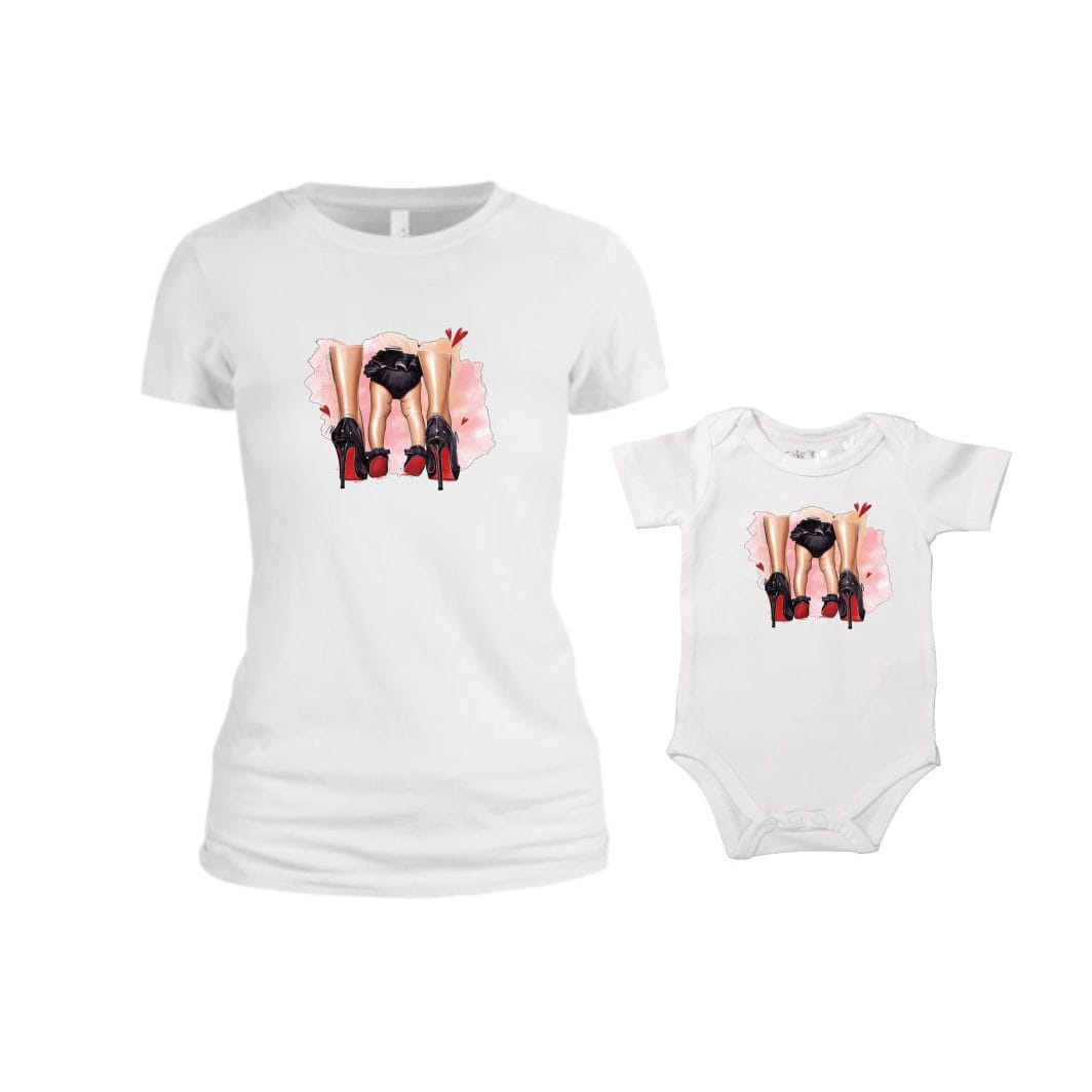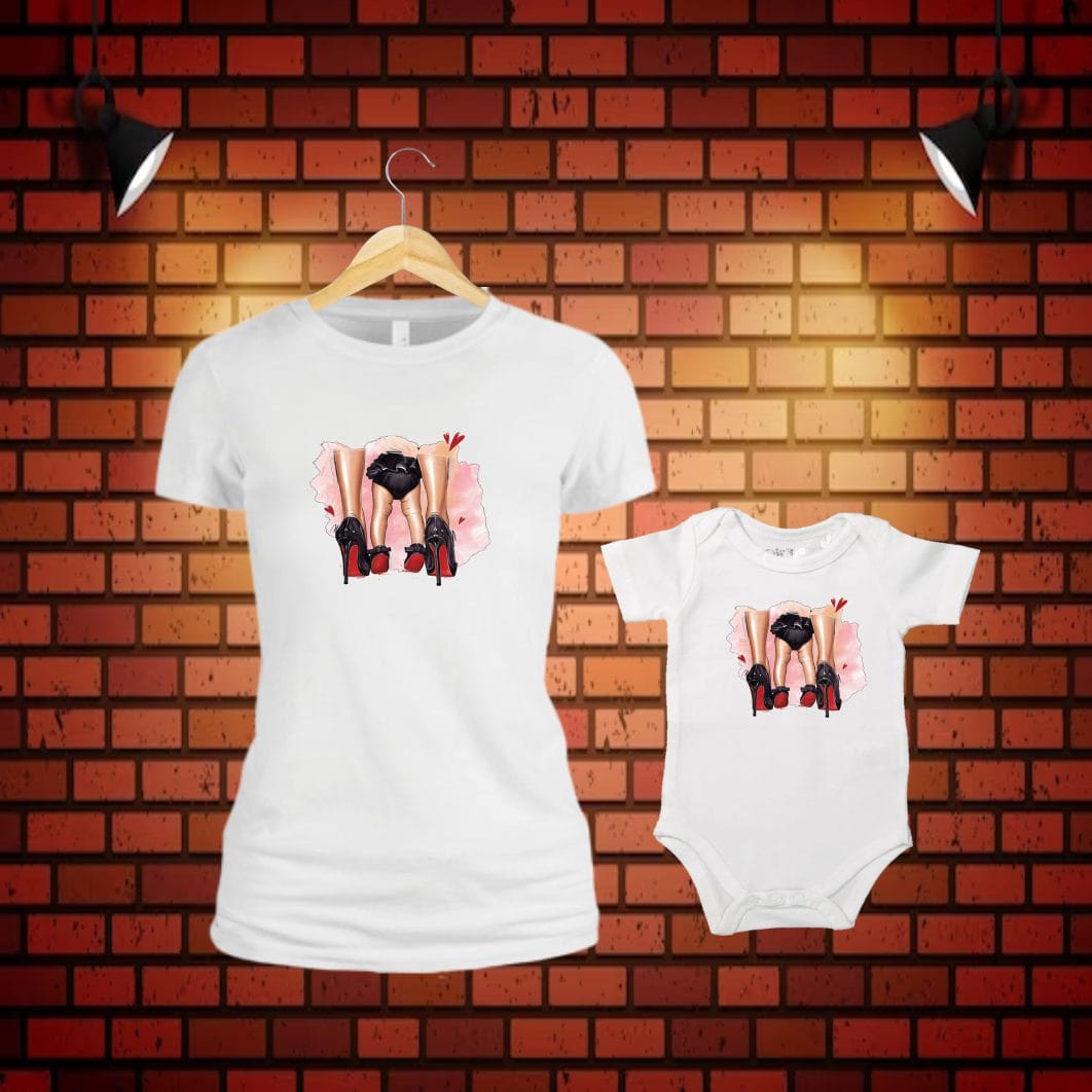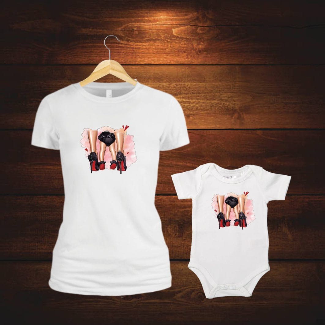 Set 2 Tricouri , Mama-fiica, Bumbac, Alb, TU91