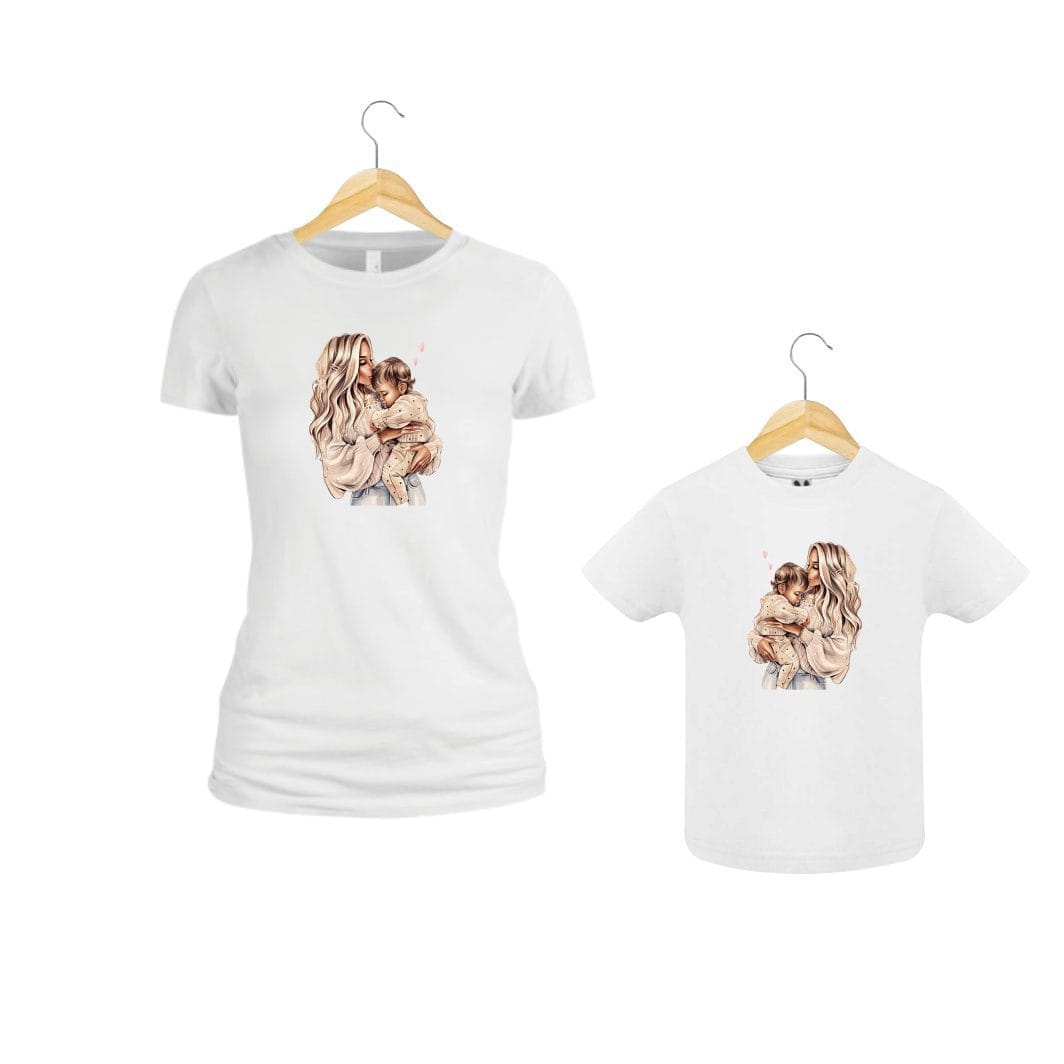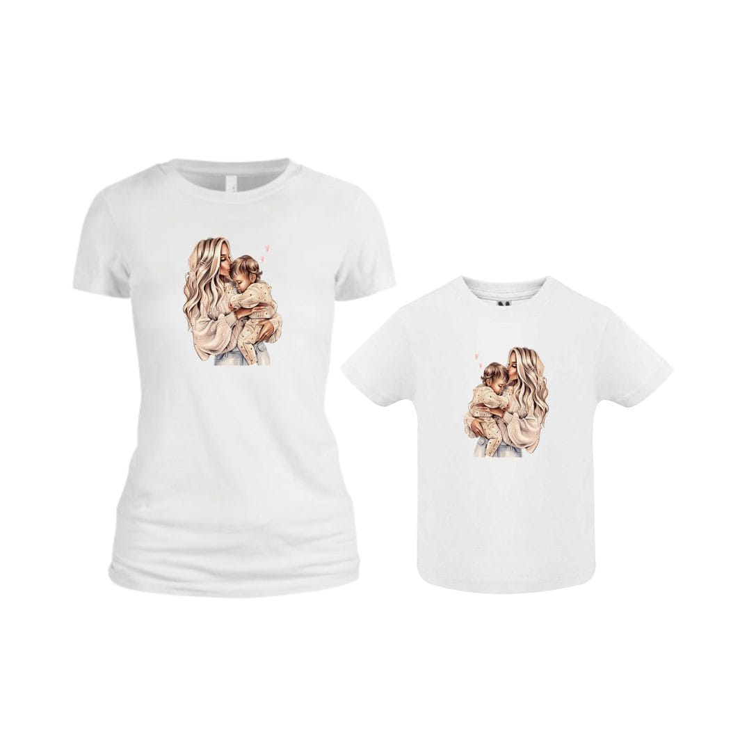 Set 2 Tricouri , Mama-fiica, Bumbac, Alb, TU92