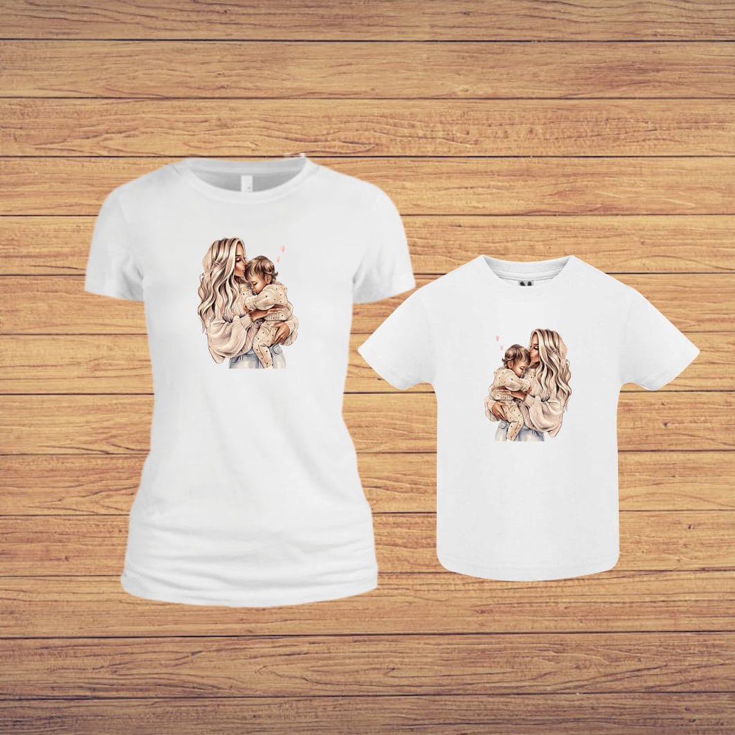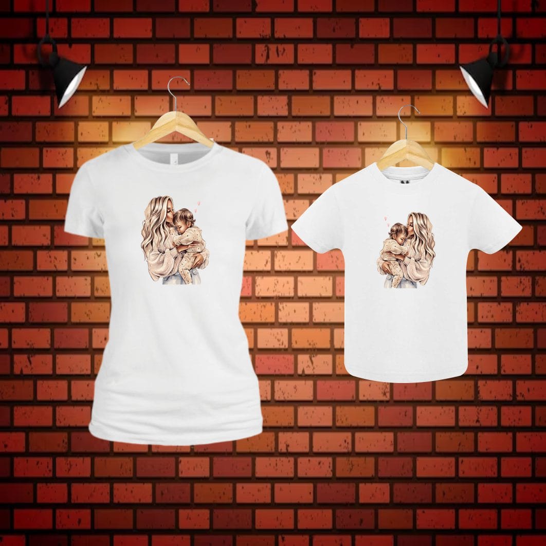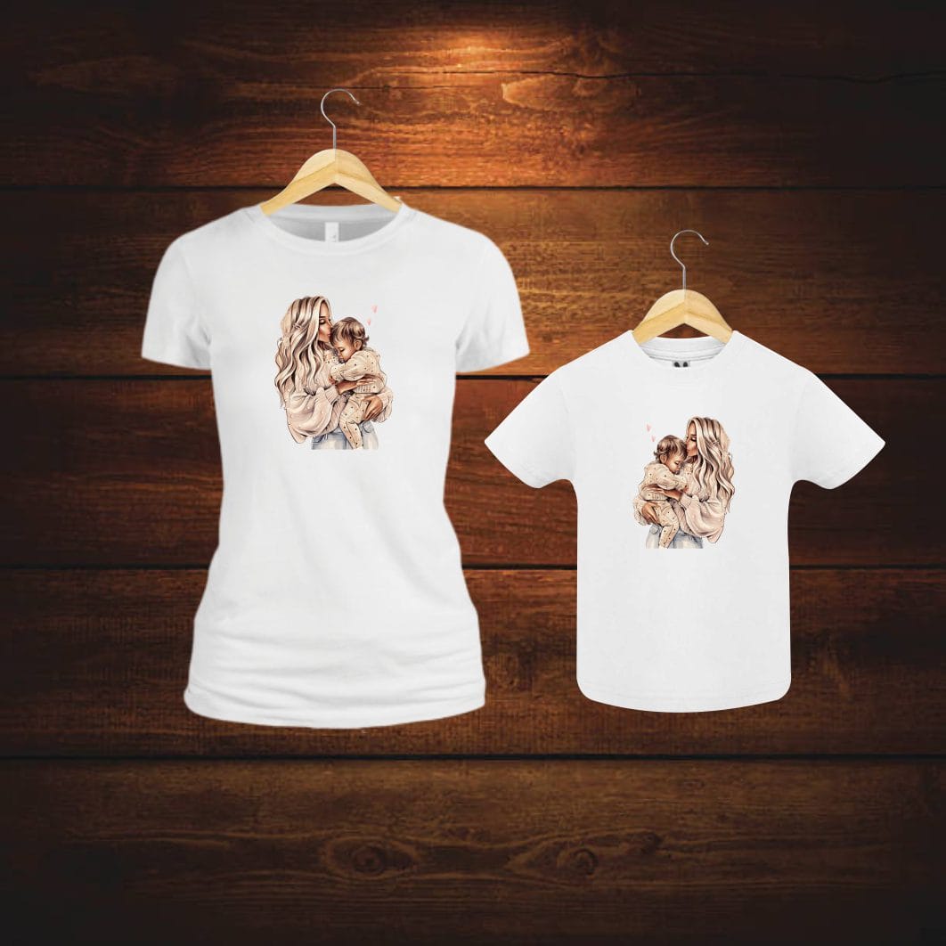 Set 2 Tricouri , Mama-fiica, Bumbac, Alb, TU91