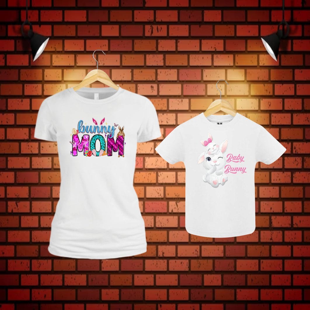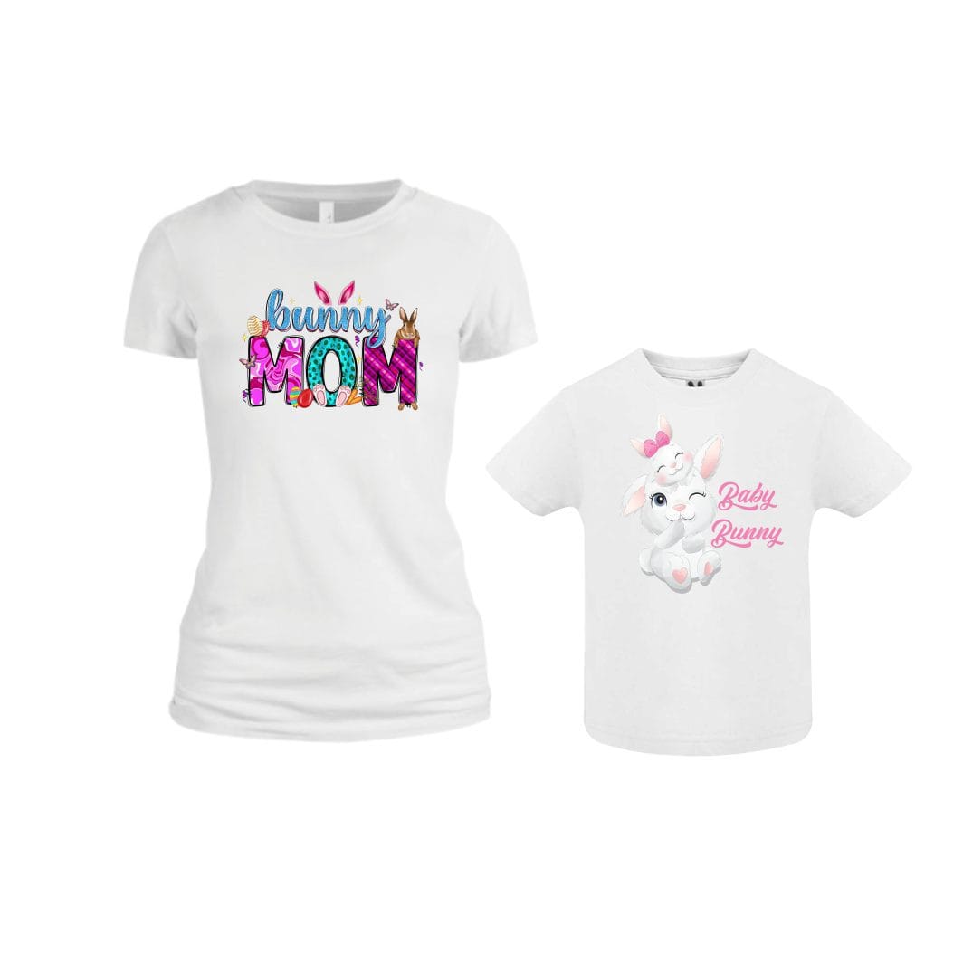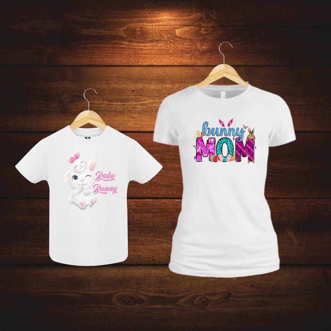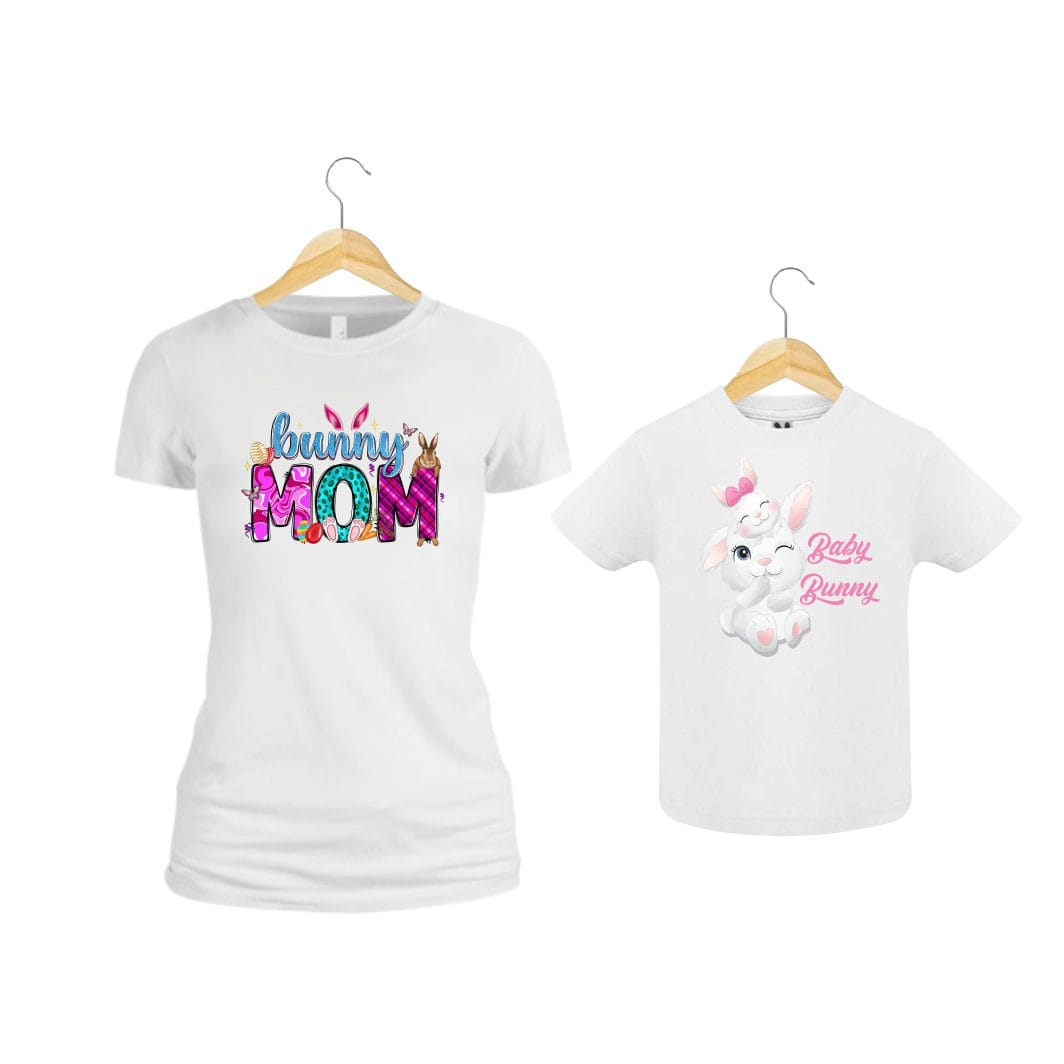 Set 2 Tricouri Pentru Paste, Mama-fiica, Bumbac, Alb