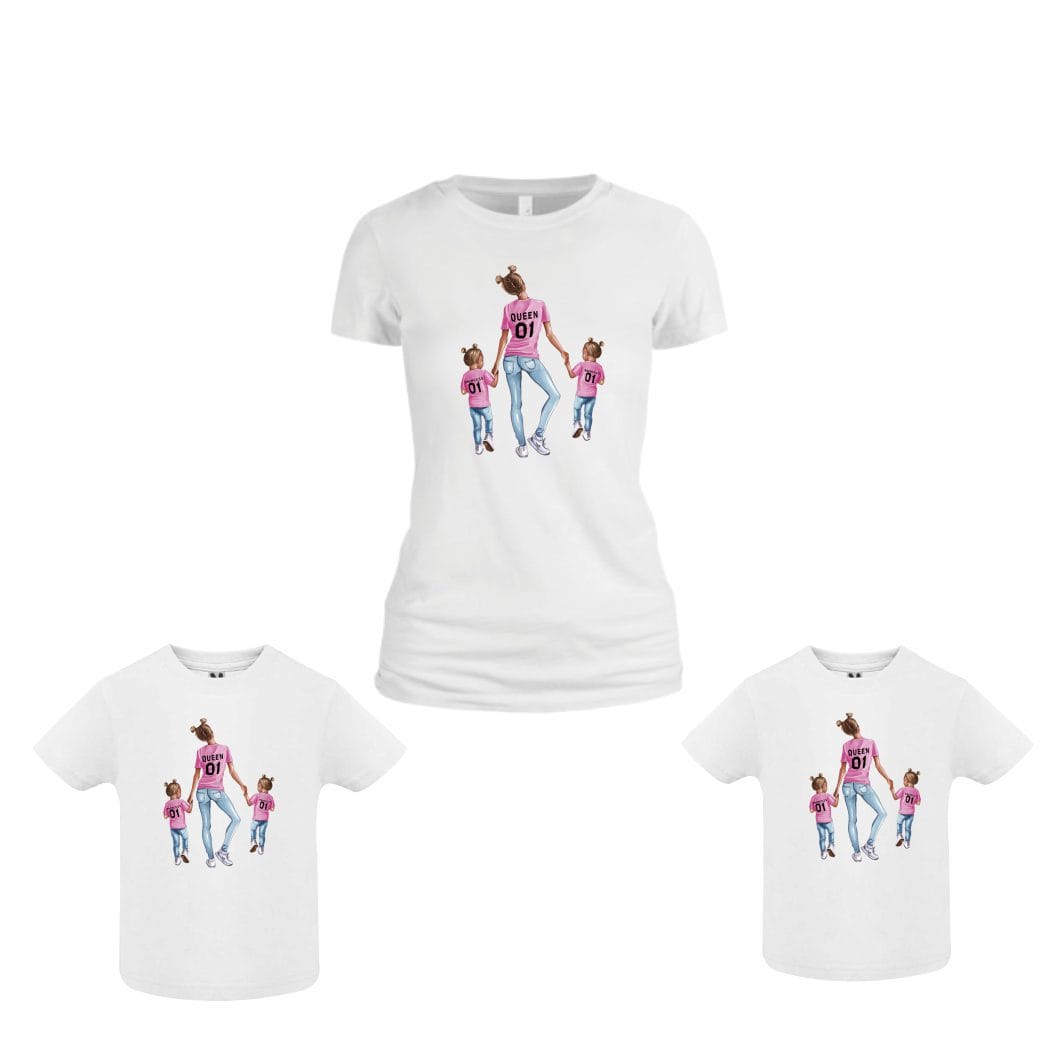 Set 3 Tricouri , Mama-fiica, Bumbac, Alb, TU76