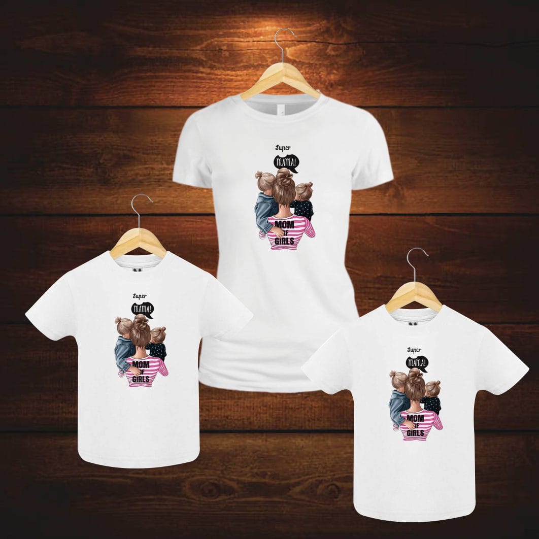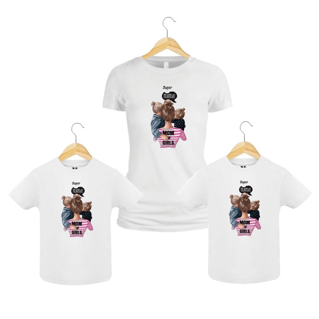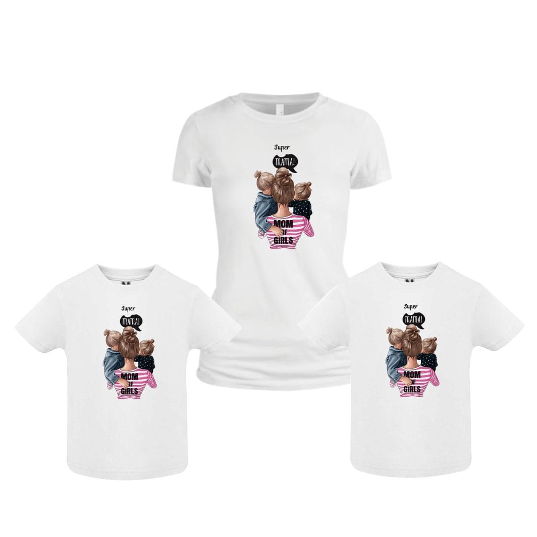 Set 3 Tricouri , Mama-fiica-fiu, Bumbac, Alb, TU81
