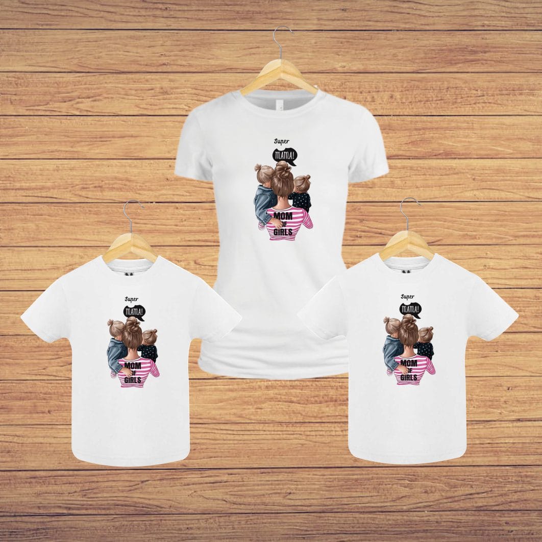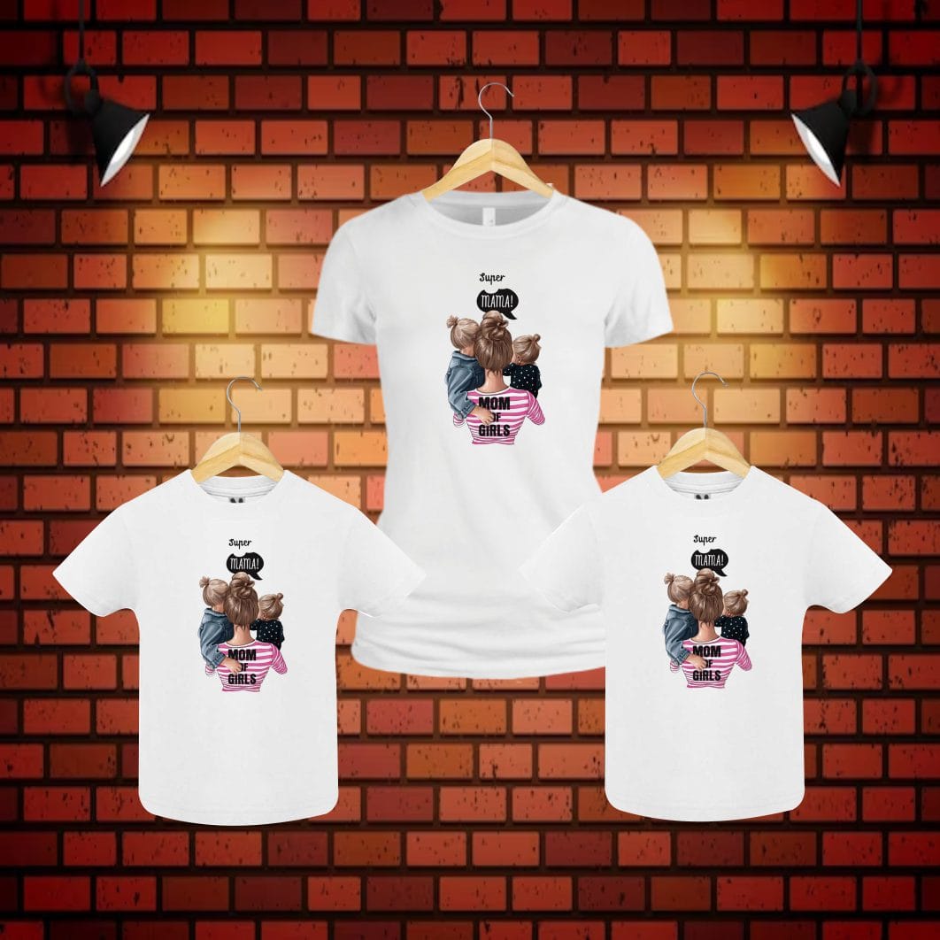 Set 3 Tricouri , Mama-fiica, Bumbac, Alb, TU80