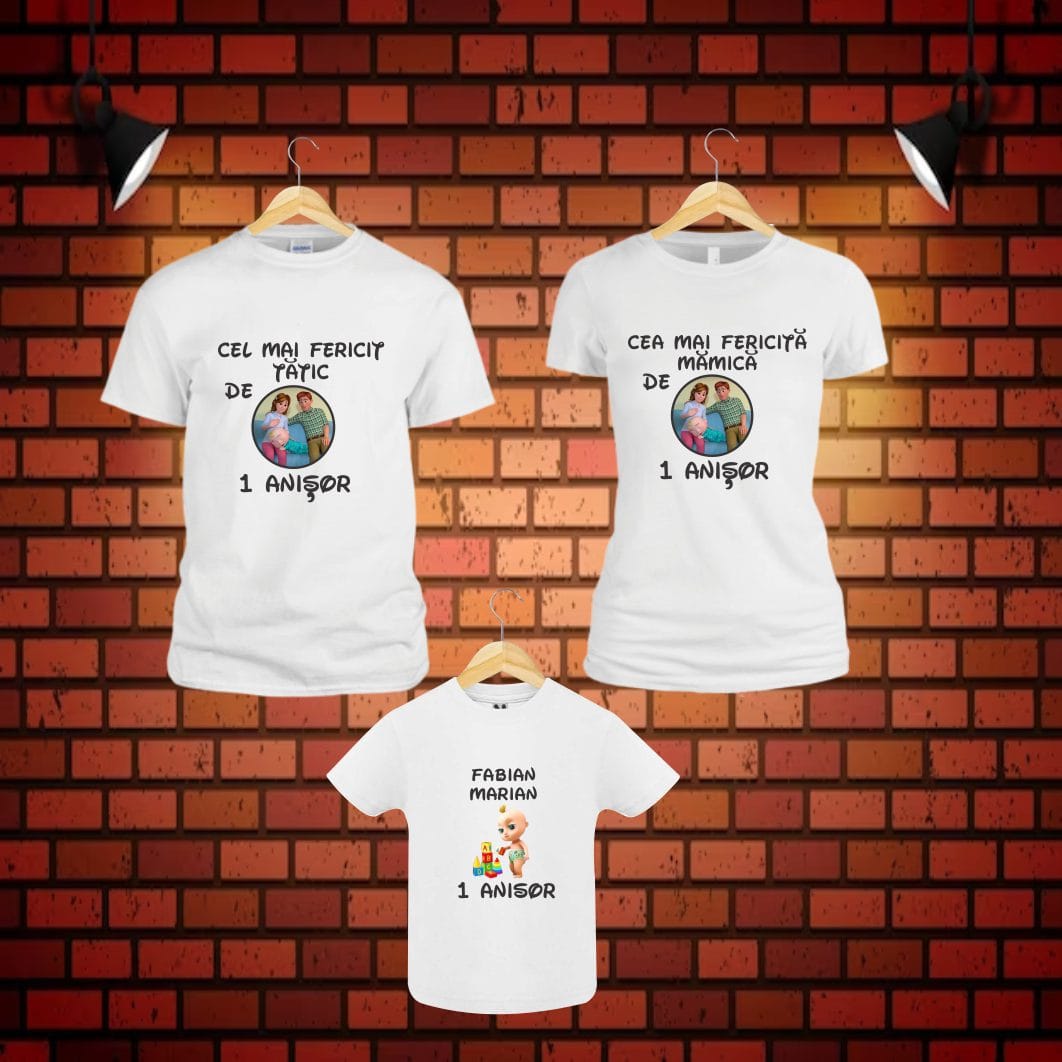 Set 3 tricouri pentru aniversarea de 1 an, taiere mot, Baby Johny, Bumbac, Alb, TM25