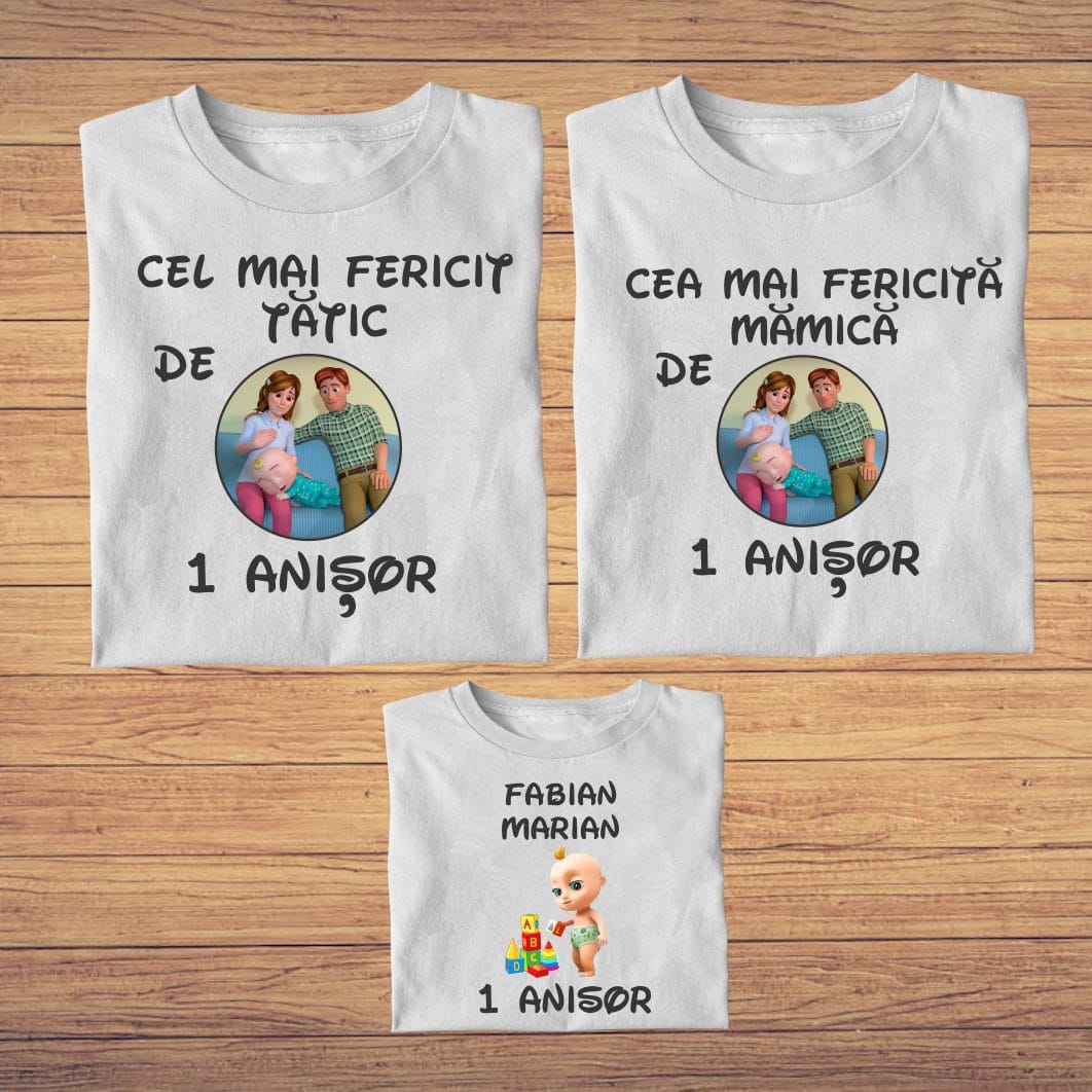 Set 3 tricouri pentru aniversarea de 1 an, taiere mot, Safari, Bumbac, Alb, TM24 Prețul inițial a fost: 180,00 lei.Prețul curent este: 161,20 lei.