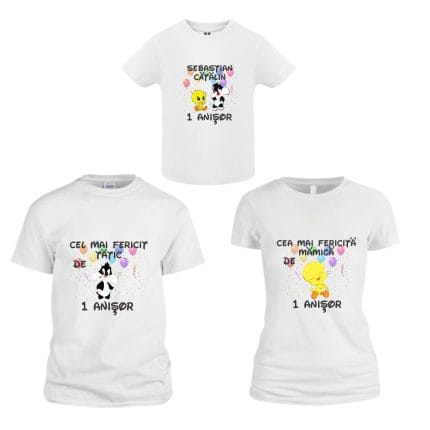 Set 3 tricouri pentru aniversarea de 1 an, taiere mot, Bumbac, Alb, TM44
