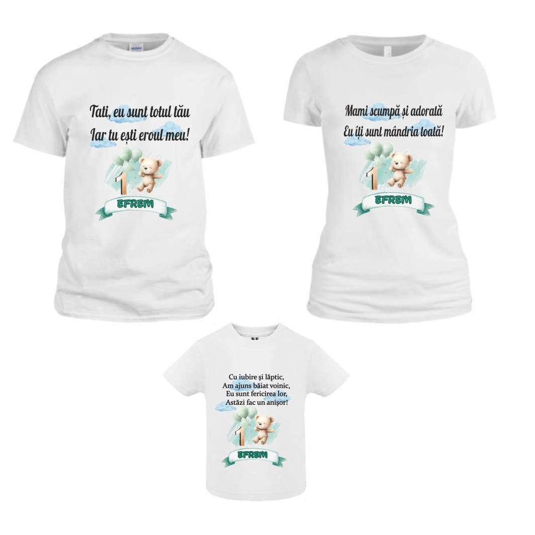 Fii primul care scrii o recenzie pentru „Set 3 tricouri pentru aniversarea de 1 an, taiere mot, Bumbac, Alb, TM44”