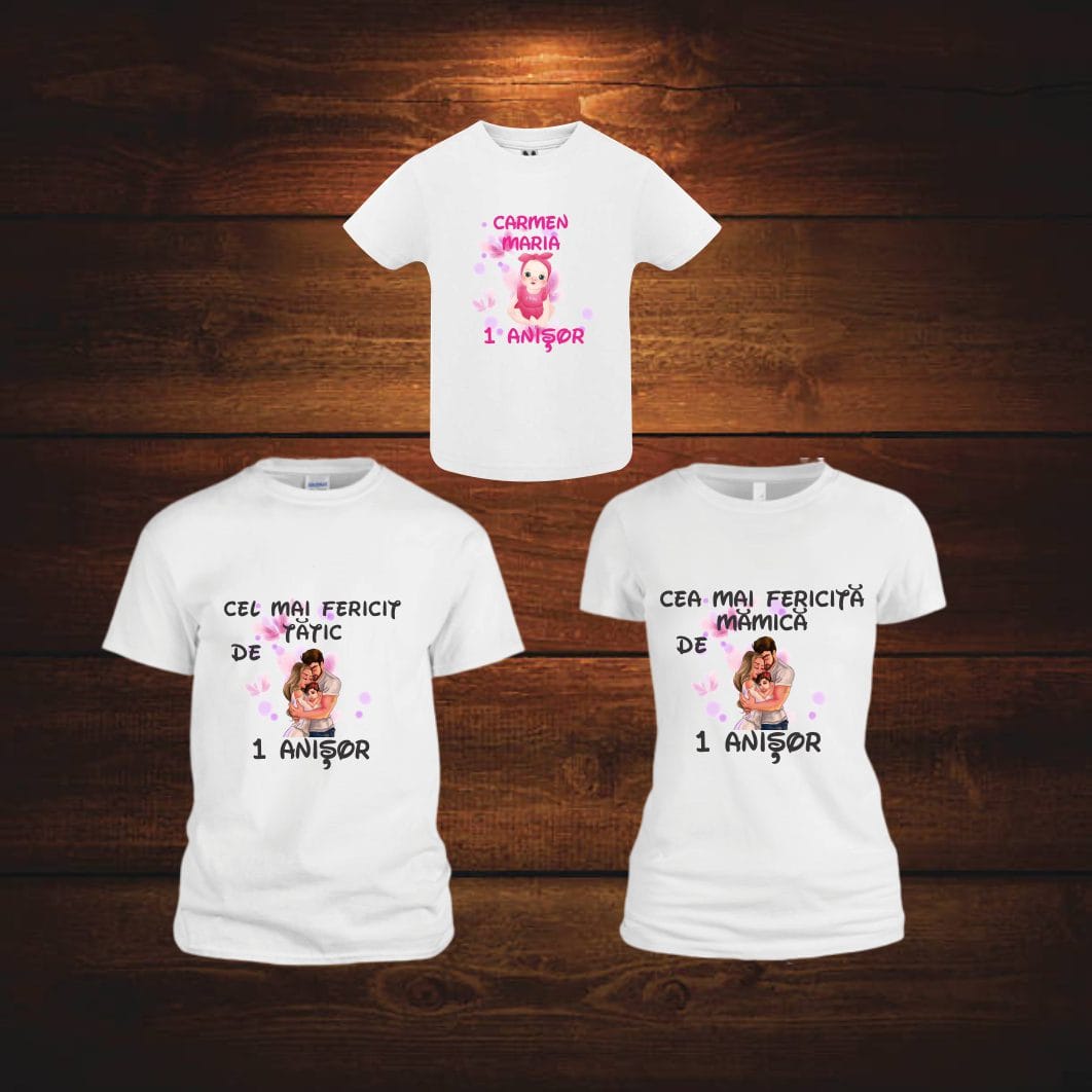 Set 3 tricouri pentru aniversarea de 1 an, taiere mot, Tematica Fluturi, Bumbac, Alb, TM35 Prețul inițial a fost: 180,00 lei.Prețul curent este: 161,20 lei.