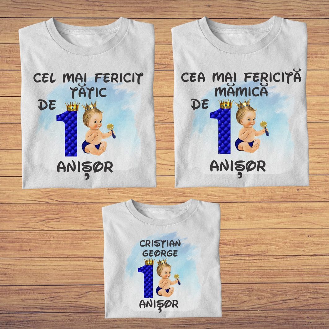 Set 3 tricouri pentru aniversarea de 1 an, taiere mot, Micul Print, Bumbac, Alb, TM33
