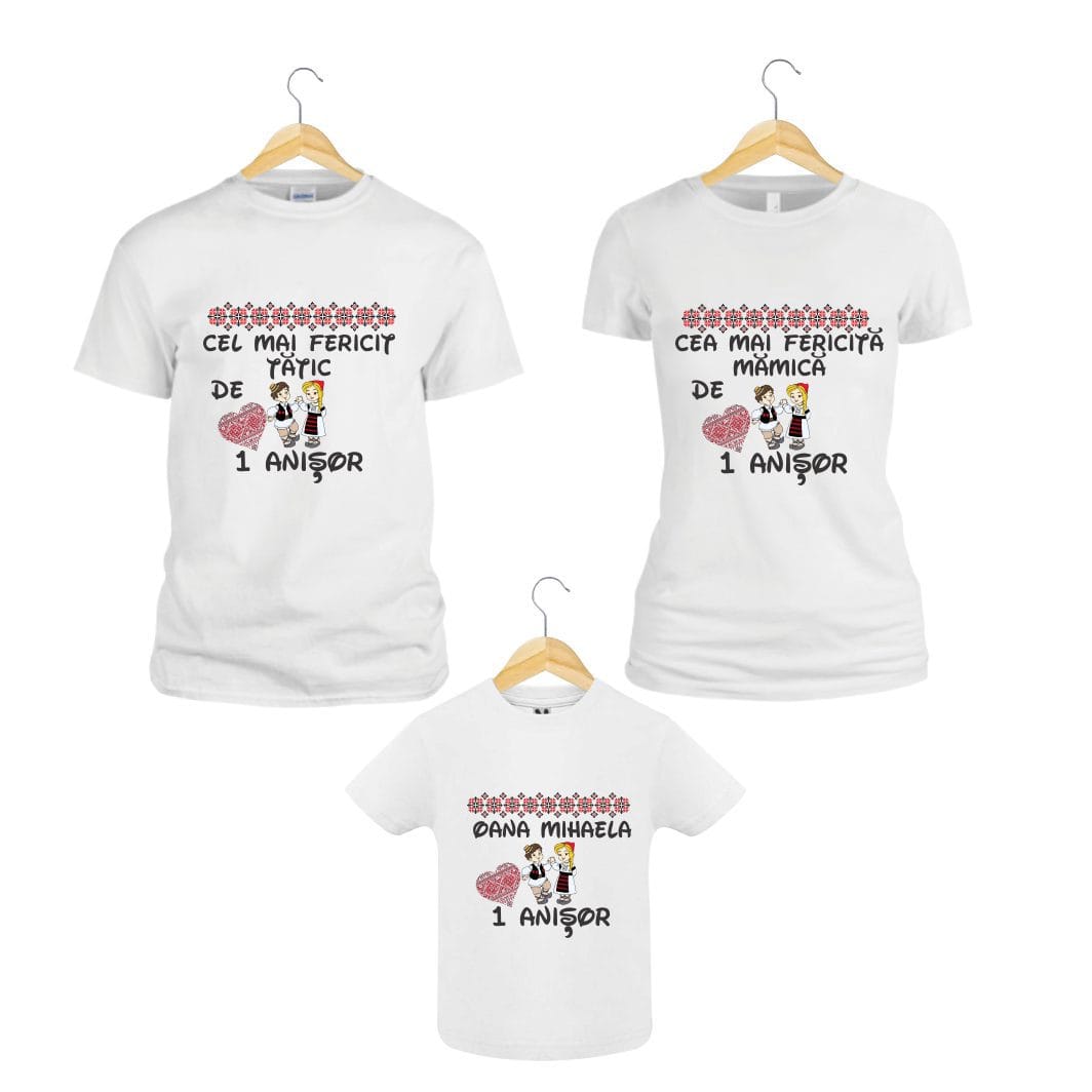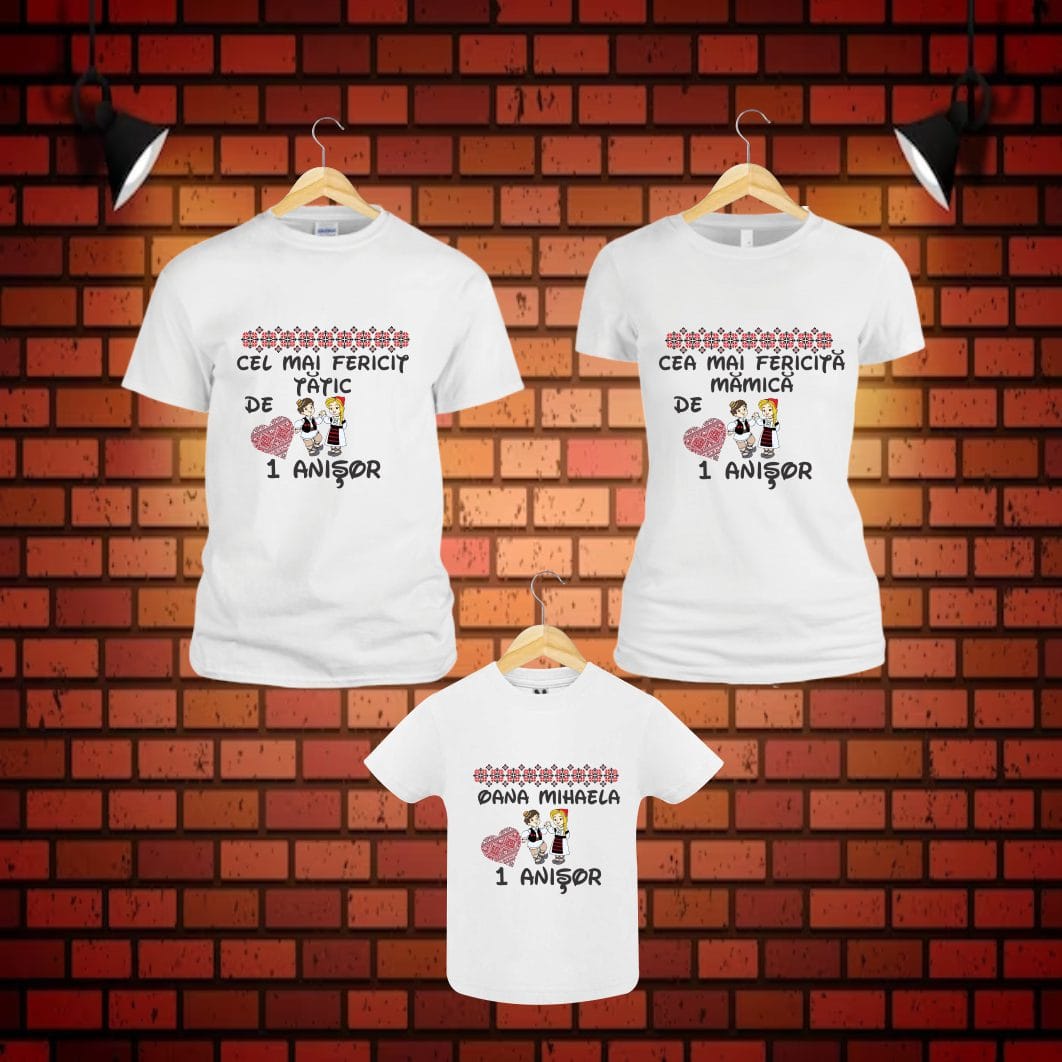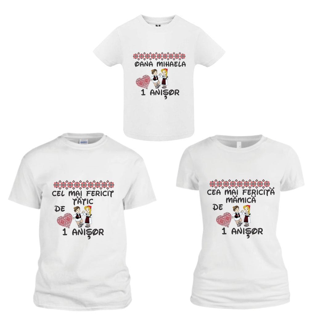 Set 3 tricouri pentru aniversarea de 1 an, taiere mot, Tematica taditionala, Bumbac, Alb, TM29