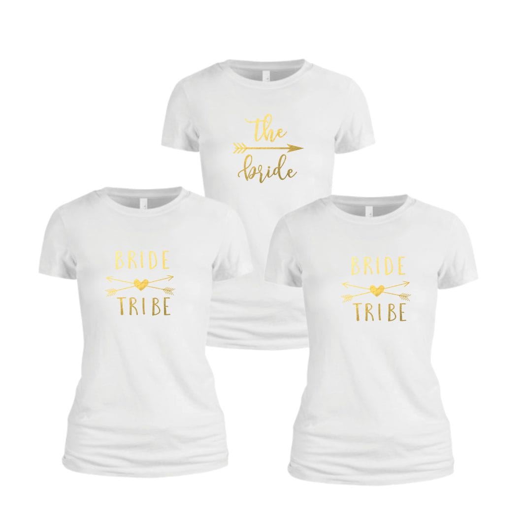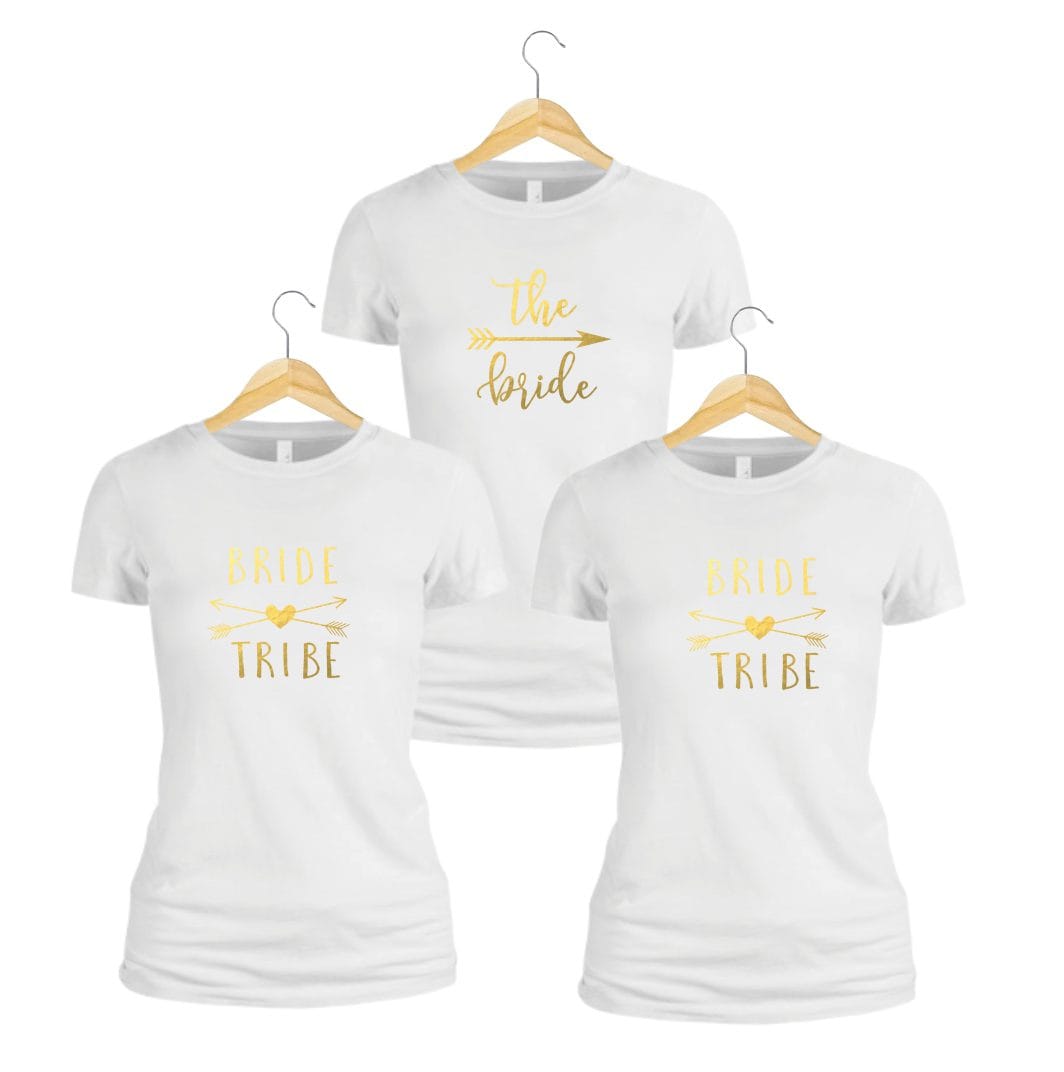 Set 3 tricouri personalizate, Mireasa, Domnisoare de onoare, Bumbac, Alb, TMD009