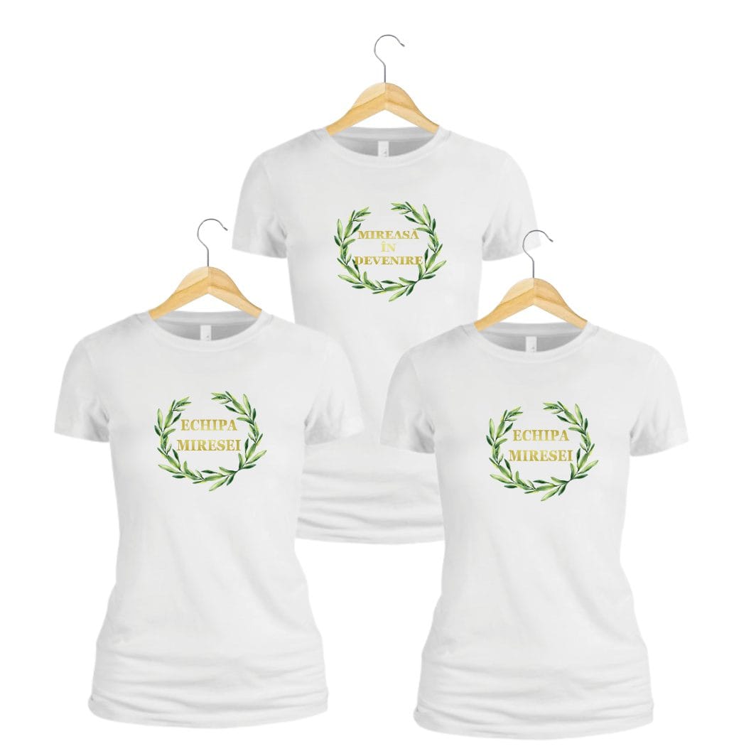Set 3 tricouri personalizate, Mireasa, Domnisoare de onoare, Bumbac, Alb, TMD014