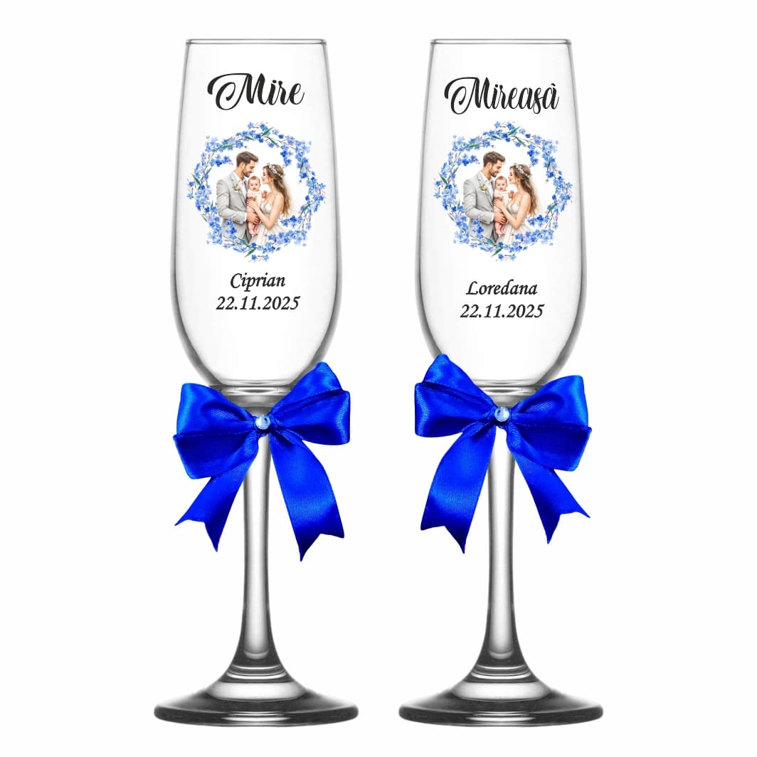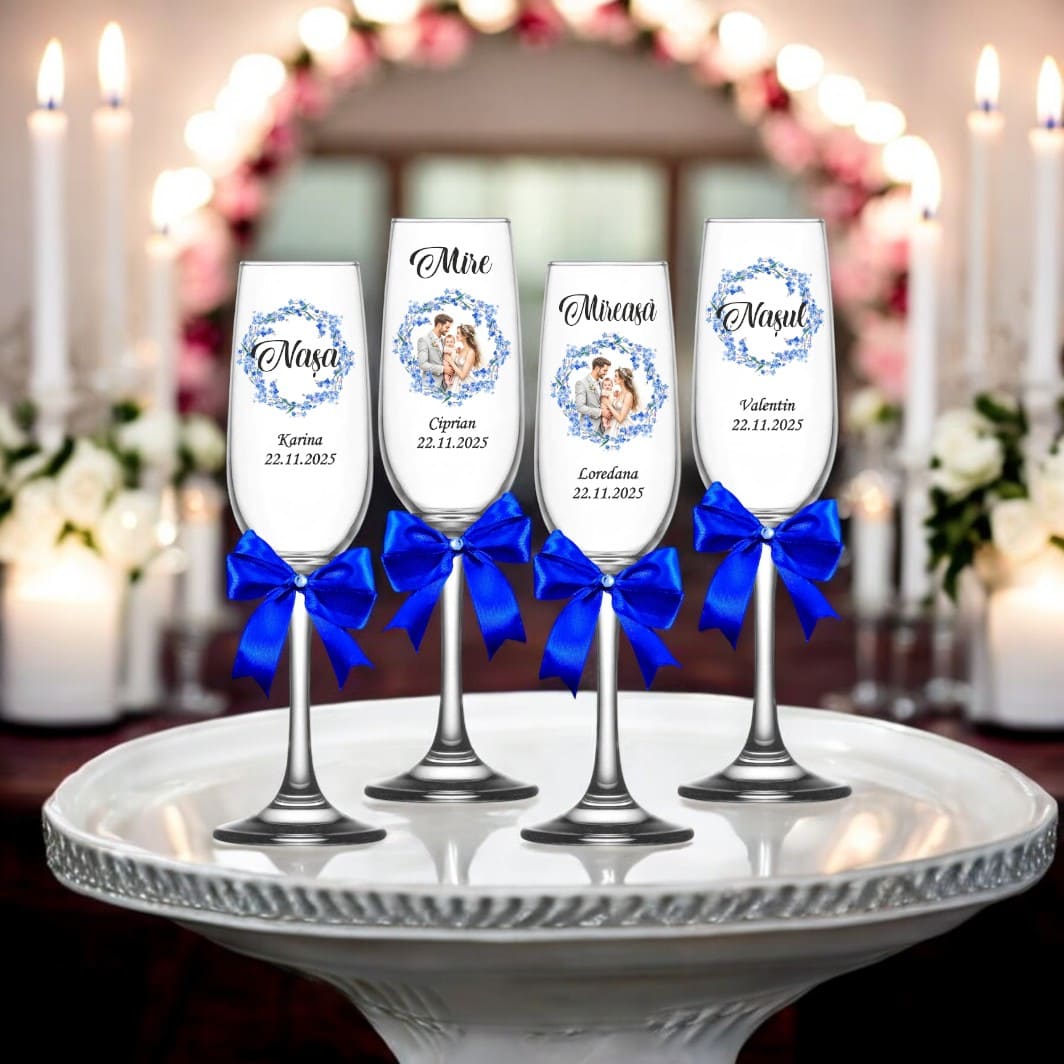 Set 4 Pahare Personalizate, Nunta, Miri, Nasi, Albastru, PNBT005