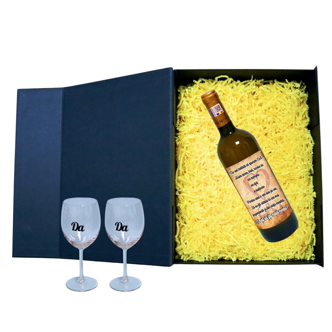 Set cadou Cerere nasi, Cutie de vin cu sticla si 2 pahare, 35x25cm, Vin Budureasca Clasic, CSVCN002