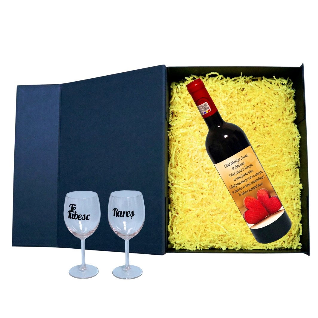 Set cadou Iubit/Sot, Cutie de vin cu sticla si 2 pahare, 35x25cm, Vin Domeniile Panciu Feteasca Neagra, CSVIS001 Prețul inițial a fost: 250,00 lei.Prețul curent este: 235,90 lei.