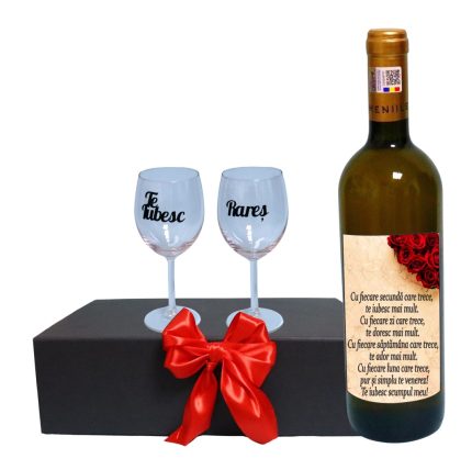 Set cadou Iubit/Sot, Cutie de vin cu sticla si 2 pahare, 35x25cm, Vin Domeniile Panciu Feteasca Regala, CSVIS003 Prețul inițial a fost: 250,00 lei.Prețul curent este: 235,90 lei.