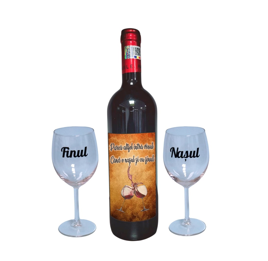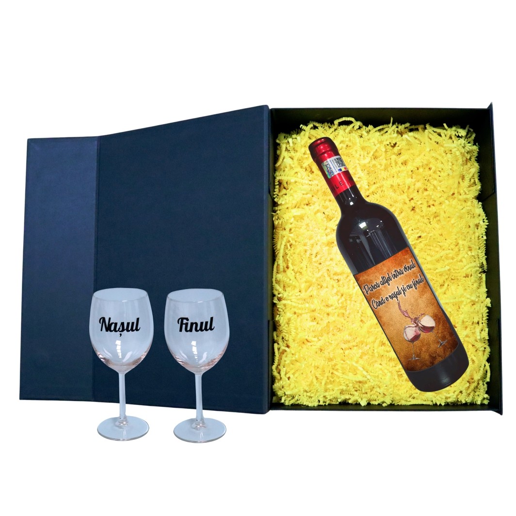 Set cadou Nasi, Cutie de vin cu sticla si 2 pahare, 35x25cm, Vin Domeniile Panciu Feteasca Neagra, CSVN008 Prețul inițial a fost: 250,00 lei.Prețul curent este: 235,90 lei.