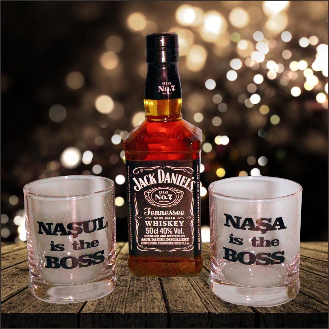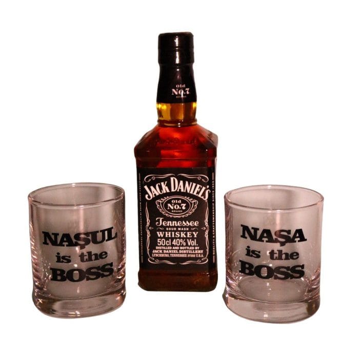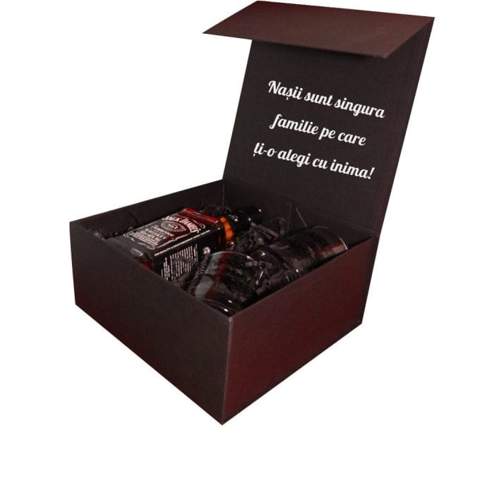 Set Personalizat Cadou Nasi, Whiskey Jack Daniel's cu 2 Pahare, 23x23 cm, Negru, DCNS013 Prețul inițial a fost: 250,00 lei.Prețul curent este: 234,00 lei.