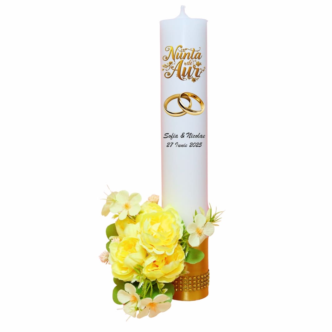 Set Lumanari, Nunta de Aur, Personalizate, 2 Bucati, Auriu, 35 cm, LNAU001