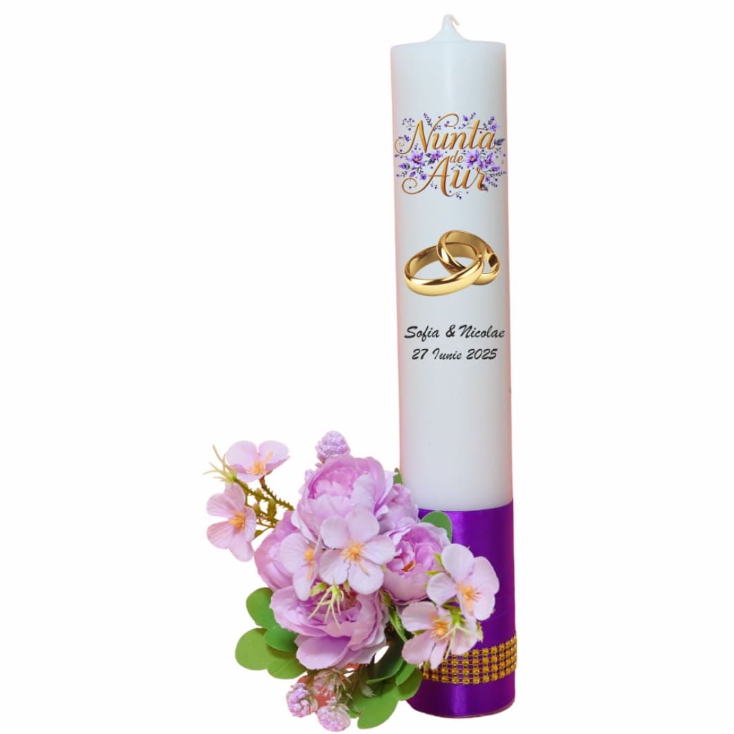 Set Lumanari, Nunta de Aur, Personalizate, 2 Bucati, Mov, 35 cm, LNAU013