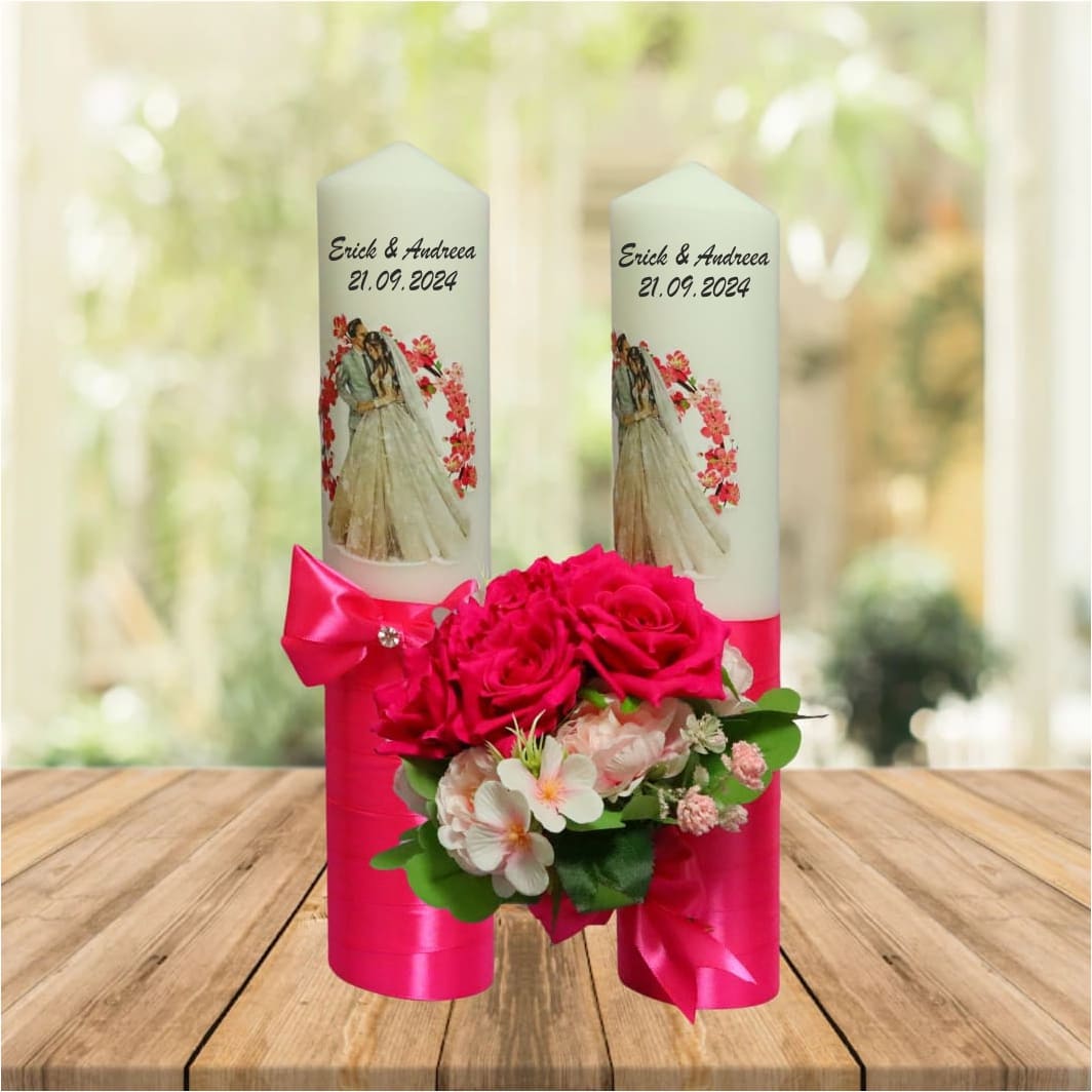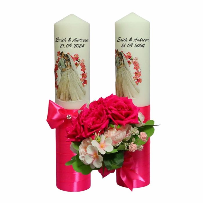 Set Lumanari Nunta, Personalizate, Mire Mireasa, 2 Bucati, Roz, 35 cm, LN004