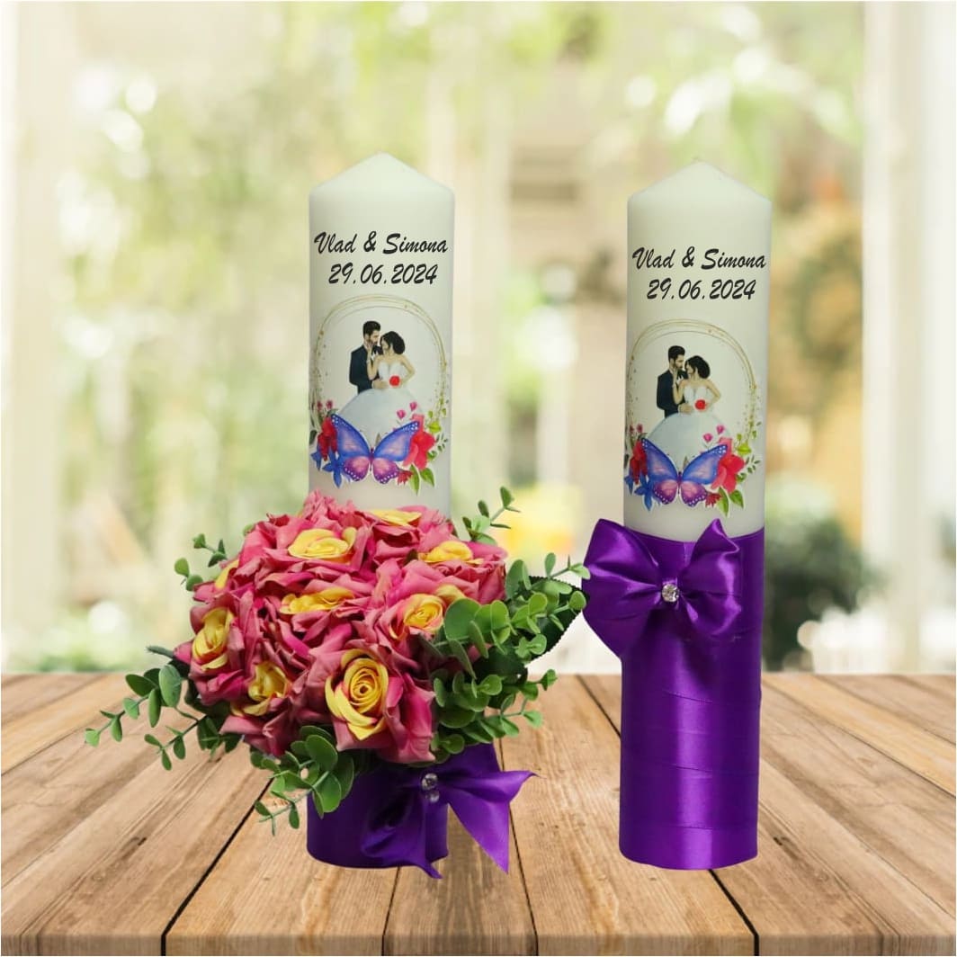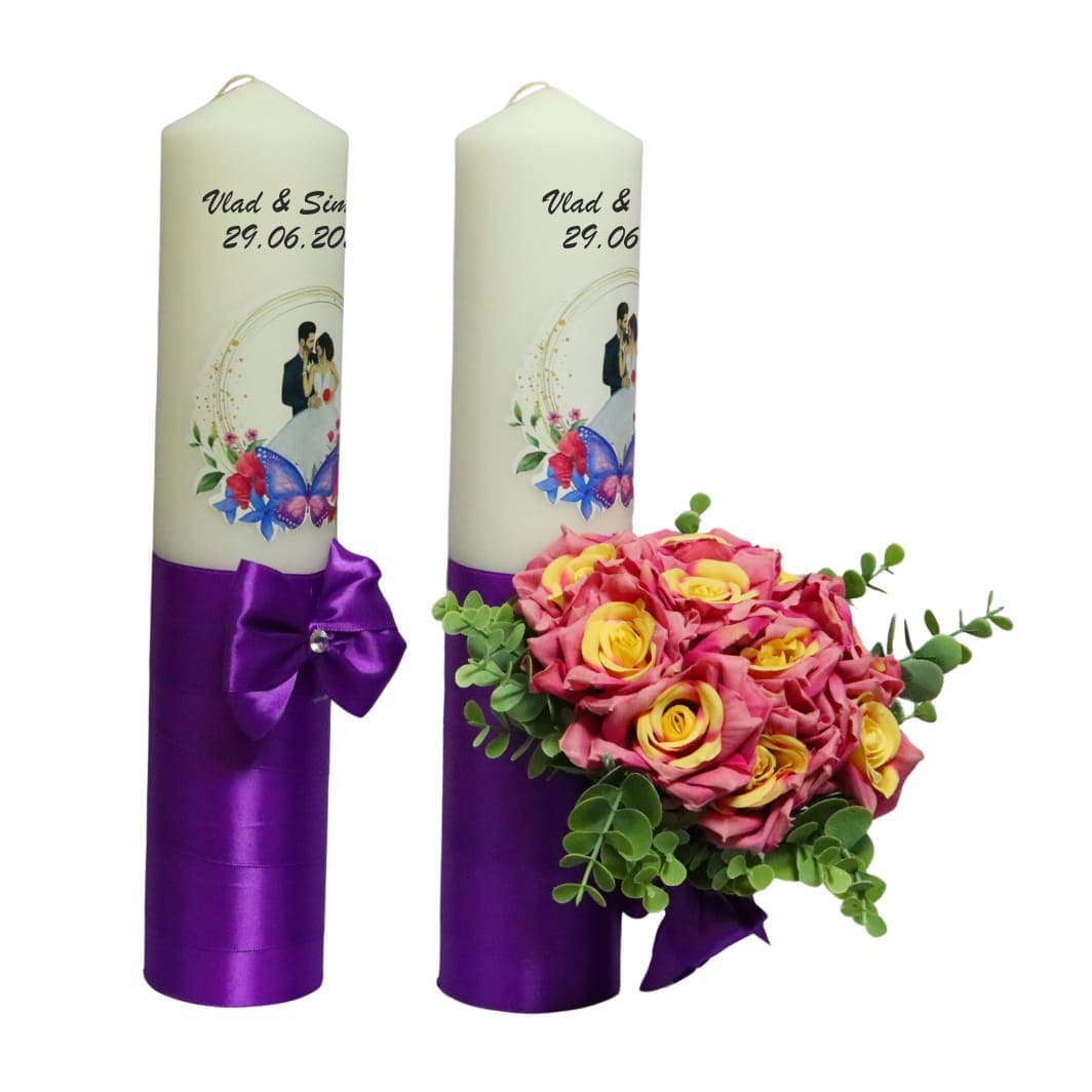 Set Lumanari Nunta, Personalizate, Mire Mireasa, 2 Bucati, Mov, 35 cm, LN025 Prețul inițial a fost: 299,00 lei.Prețul curent este: 278,80 lei.