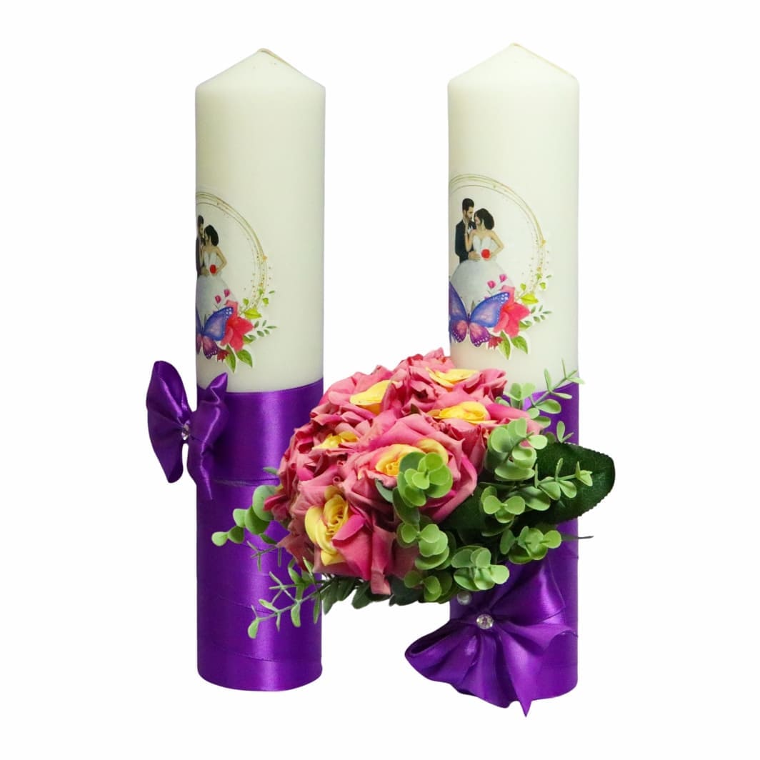 Set Lumanari Nunta, Personalizate, Mire Mireasa, 2 Bucati, Mov, 35 cm, LN024