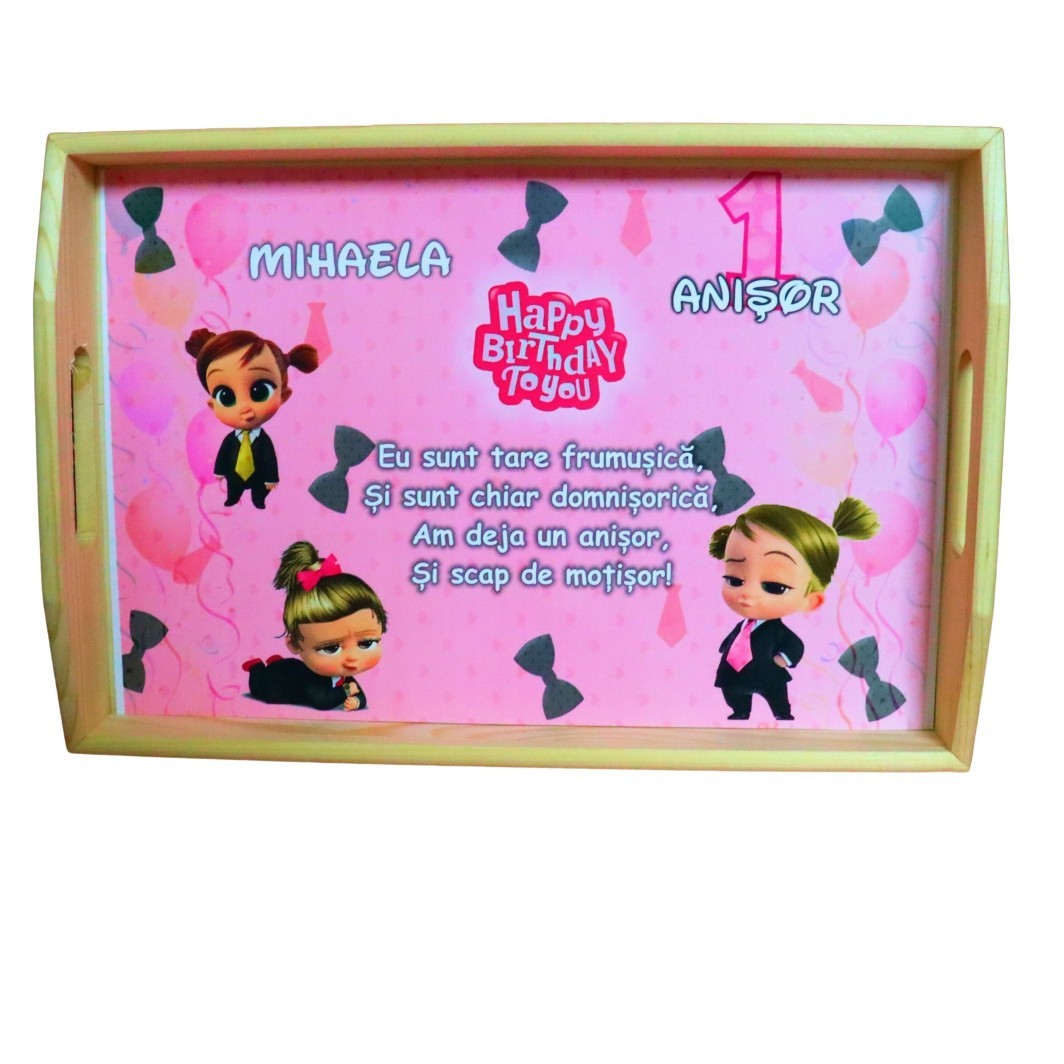 Set Mot Personalizat, Baby Boss Girl, 6 Piese, Lemn, Roz, 20x30cm, SMD131