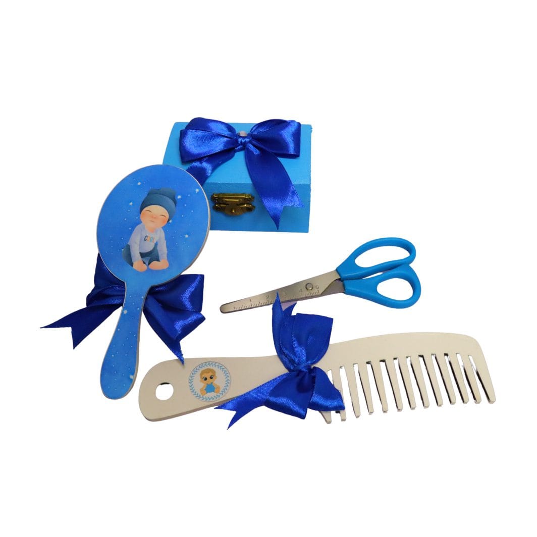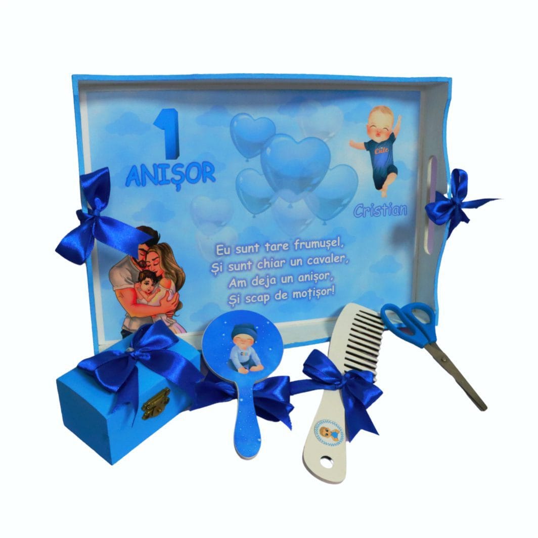 Setul de mot personalizat, poate fi un cadou din partea nasilor la taierea motului.