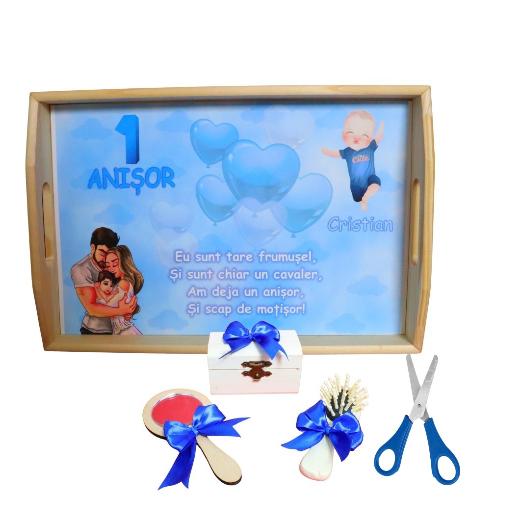 Set mot/Turta personalizat pentru taiere motului copilului la aniversarea de un anisor.