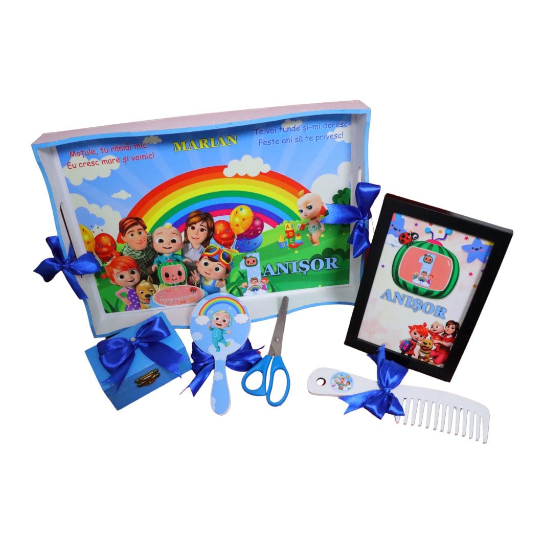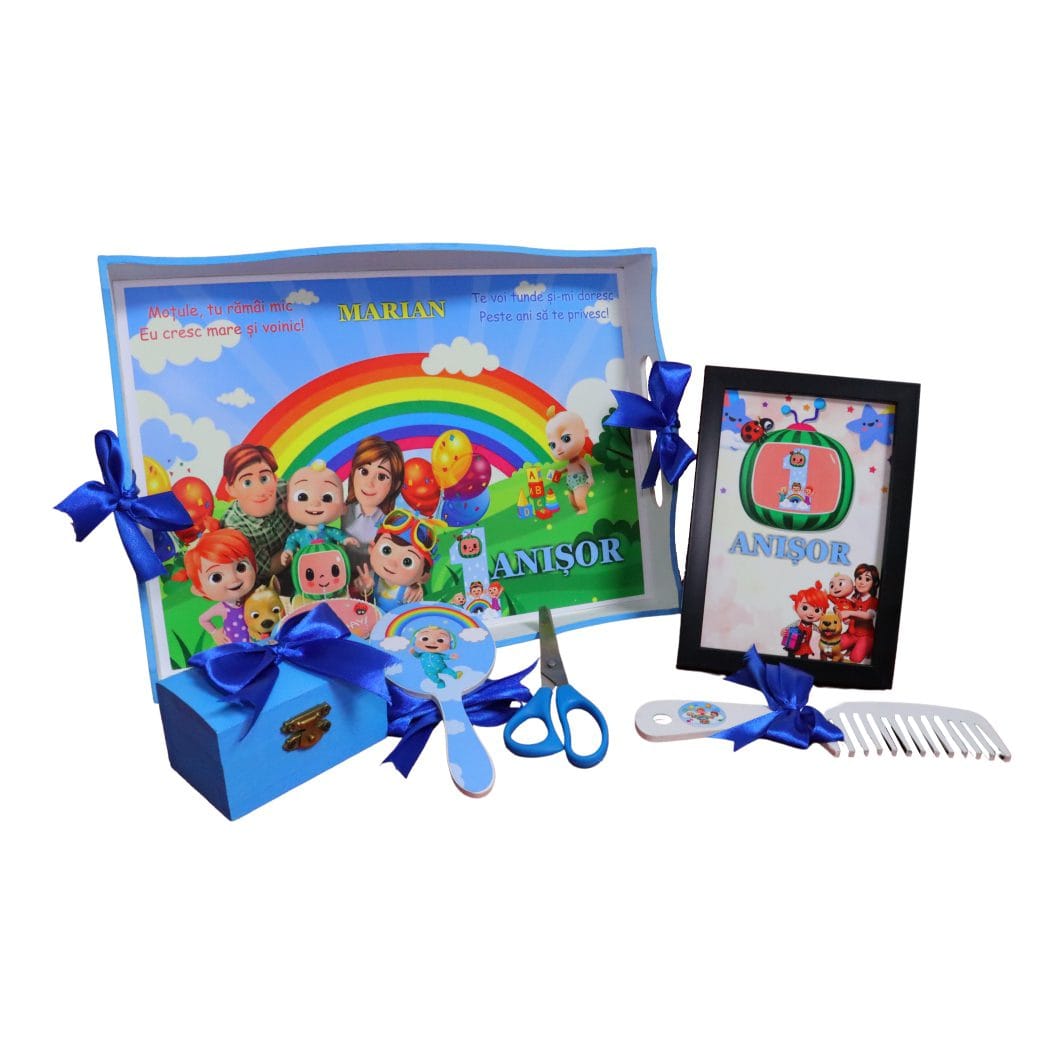Setul de mot personalizat, poate fi un cadou din partea nasilor la taierea motului.