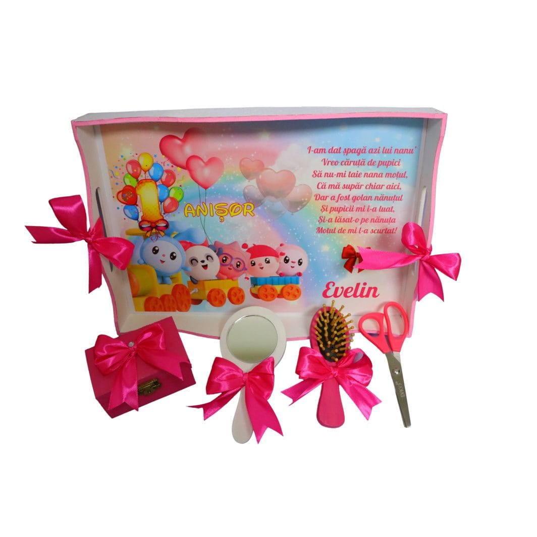 Setul de mot personalizat, poate fi un cadou din partea nasilor la taierea motului.
