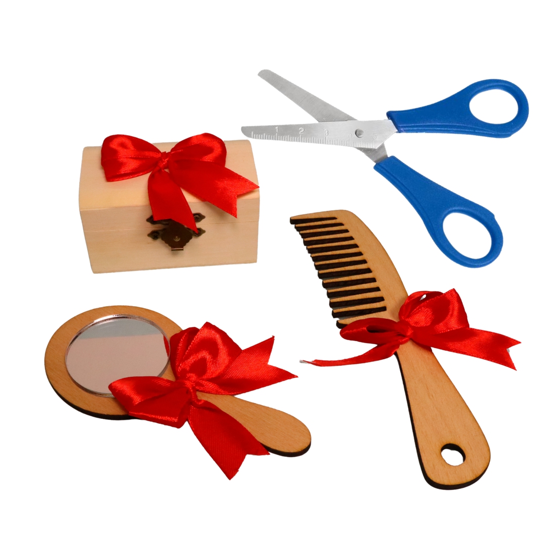 Setul de mot personalizat, poate fi un cadou din partea nasilor la taierea motului.