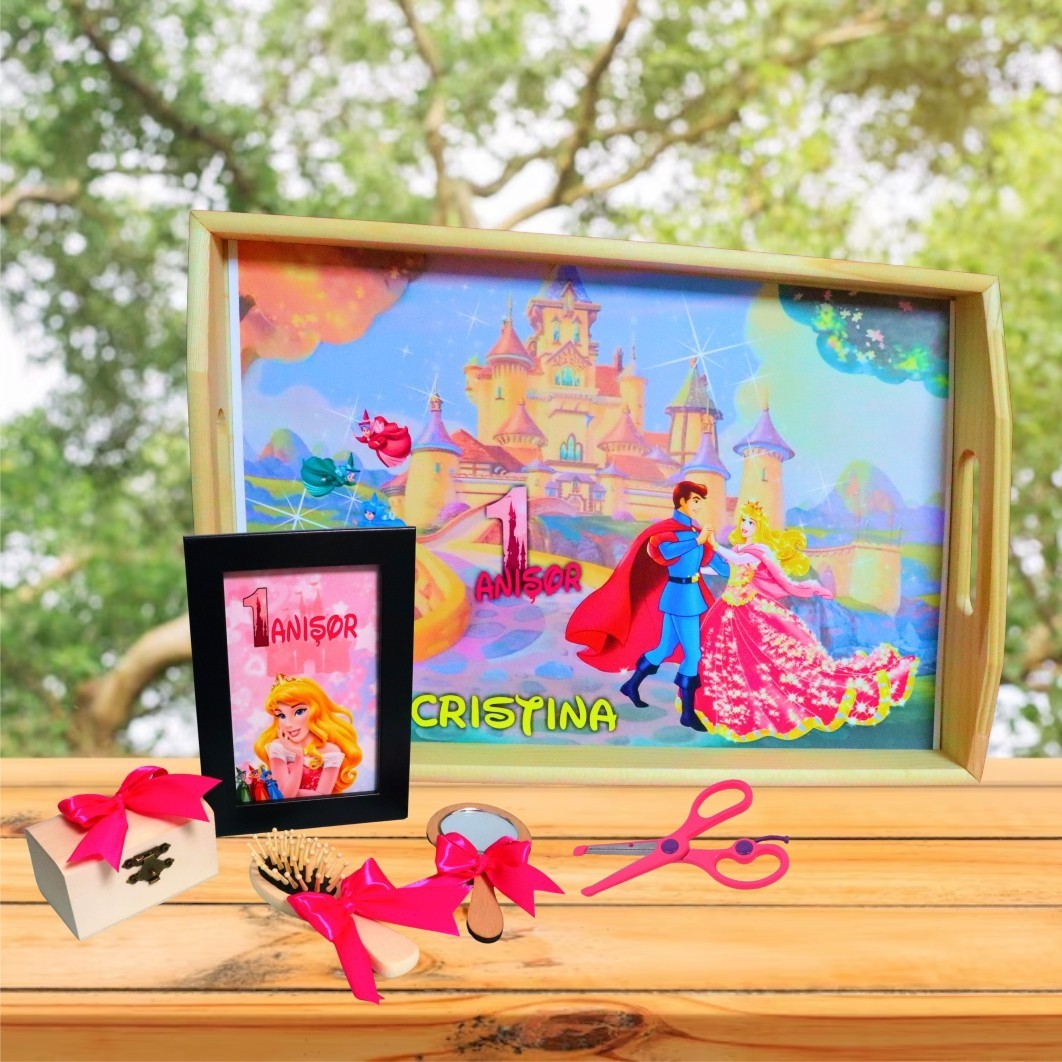 Set Mot Personalizat, Frumoasa Adormita, 6 Piese, Lemn, Roz, 20x30cm, SMD087