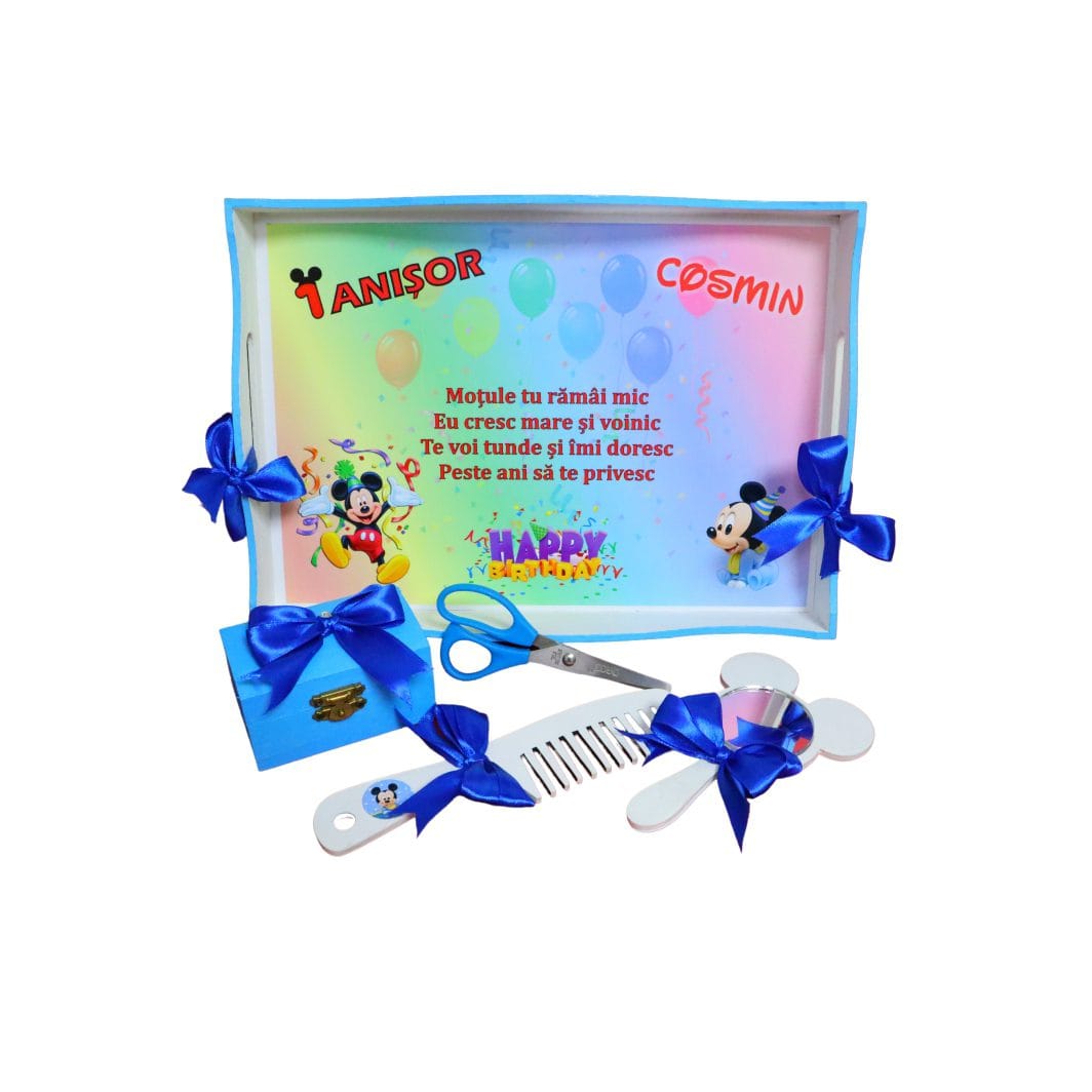Fii primul care scrii o recenzie pentru „Set Mot Personalizat, Mickey Mouse, 5 Piese, Lemn, Albastru, 20x30cm, SMD038”