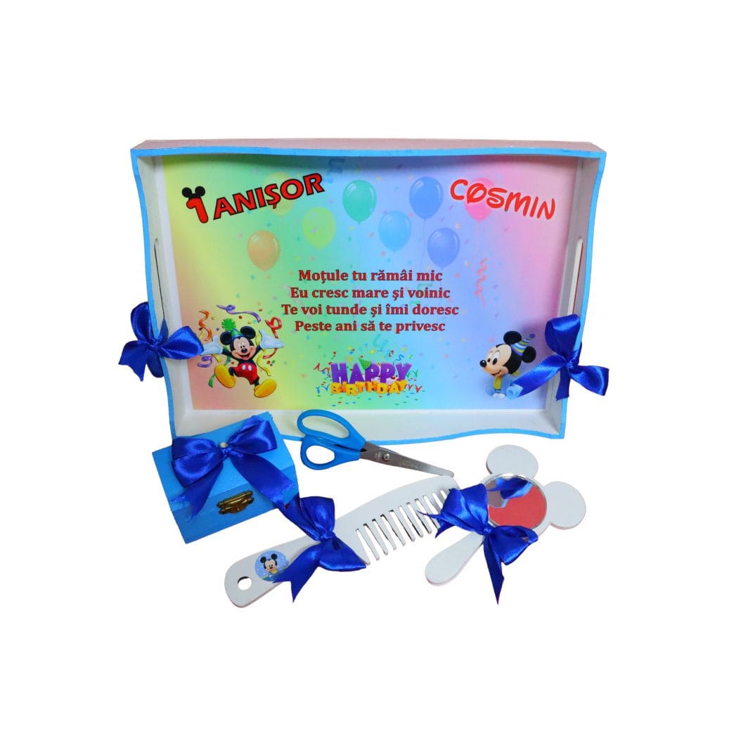 Setul de mot personalizat, poate fi un cadou din partea nasilor la taierea motului.