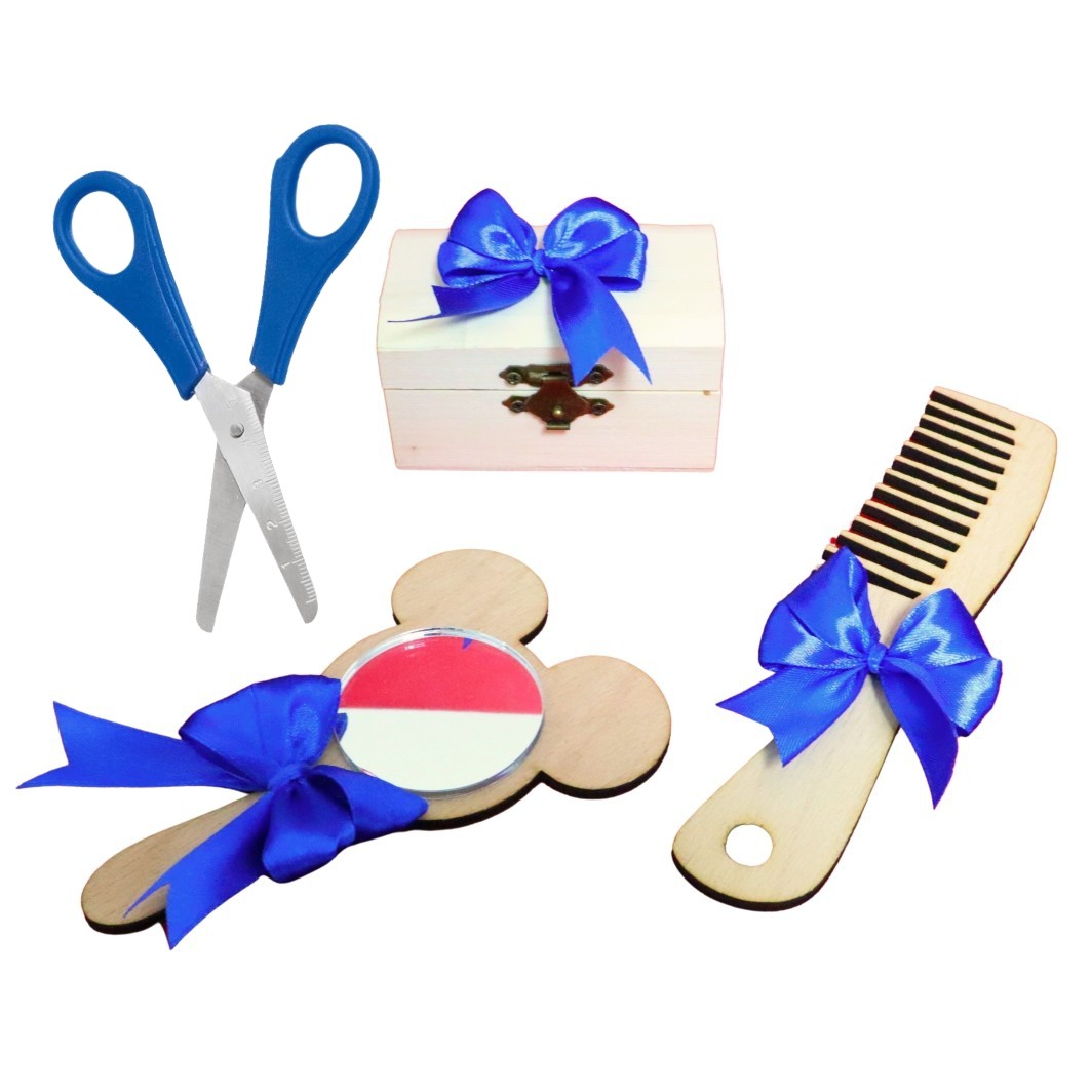 Setul de mot personalizat, poate fi un cadou din partea nasilor la taierea motului.