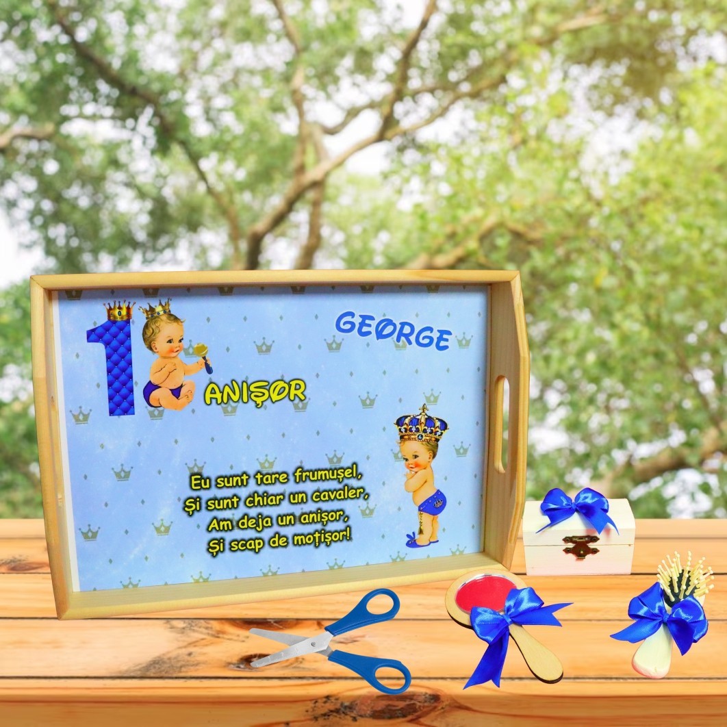 Fii primul care scrii o recenzie pentru „Set Mot Personalizat, Micul Print, 5 Piese, Lemn, Albastru, 20x30cm, SMD078”