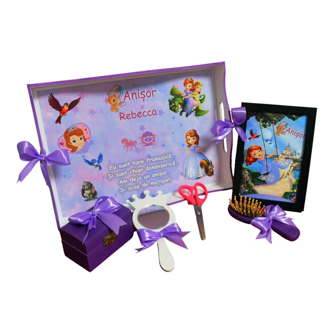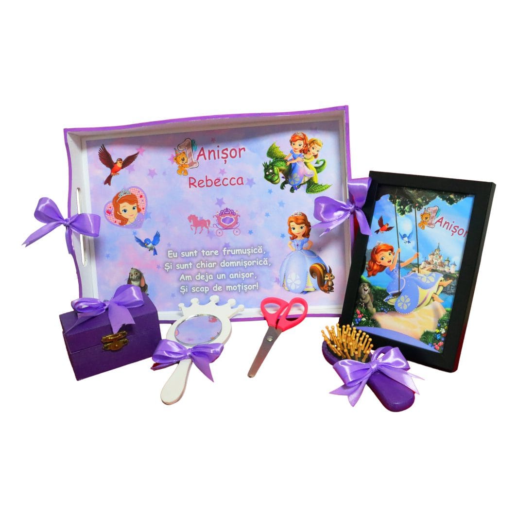 Fii primul care scrii o recenzie pentru „Set Mot Personalizat, Printesa Sofia, 6 Piese, Lemn, Mov, 20x30cm, SMD047”